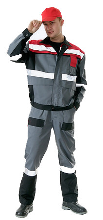 Куртка, укороченная с притачным поясом на резинке с супатной застежкой на молнию. По кокеткам, полочкам, спинке, рукавам и брючинам расположены световозвращающие полосы, что позволяет использовать костюм в условиях плохой видимости. Множество функциональных карманов, в том числе карман для средств связи с клапаном на липучке.