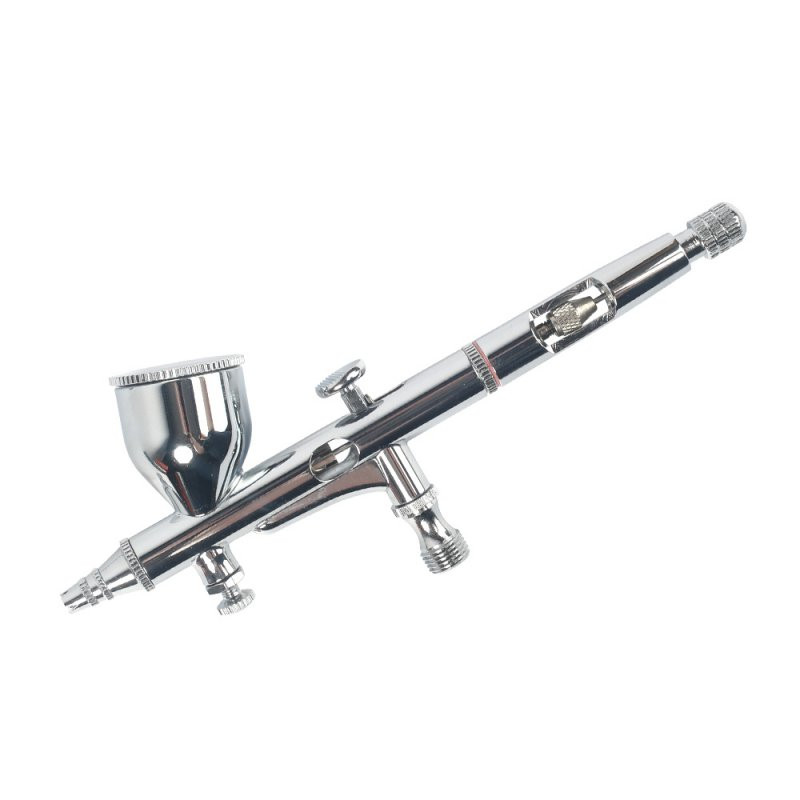 Аэрограф Patriot AB 400 работает на сжатом воздухе, используемый для профессиональных работ. В конструкции устройства предусмотрен небольшой несъемный бачок объемом 7 миллилитров, который расположен под углом к конструкции. Так он загораживает меньше рабочей поверхности. Сопло диаметра 0,2 мм отлично подходит для тончайшего нанесения краски и рисования мелких элементов. Высокочувствительный регулятор подачи воздуха и краски.