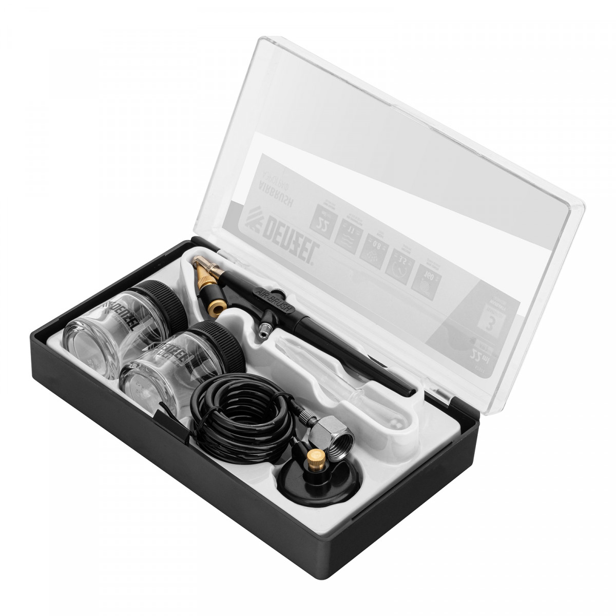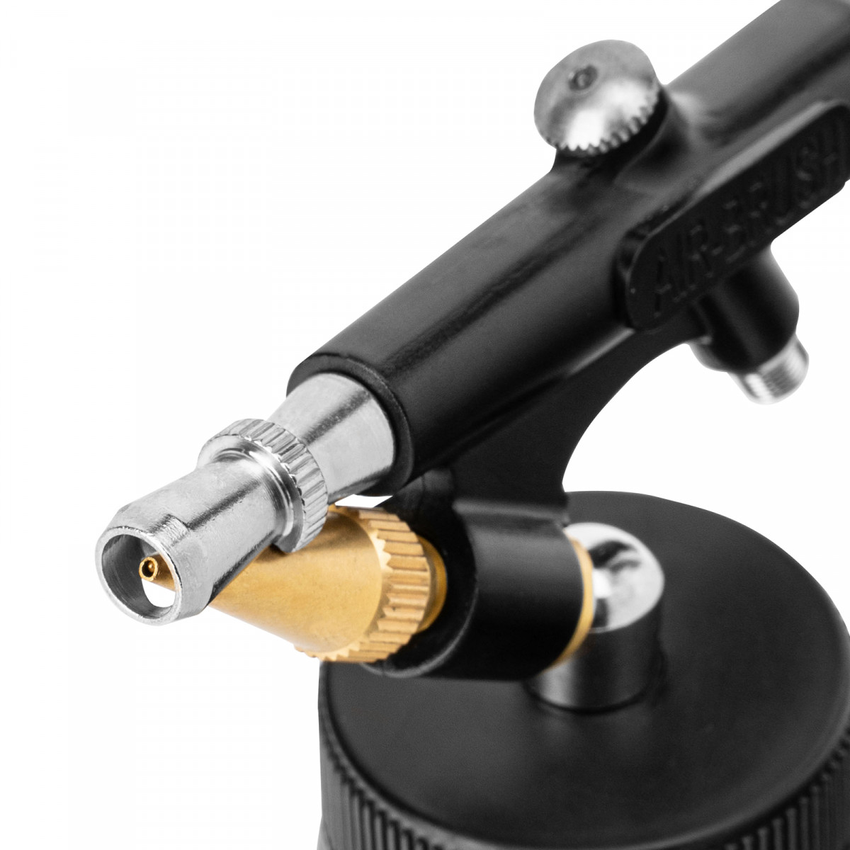 • Продуманная комплектация — аэрограф поставляется с дополнительным бачком, крышкой-переходником и дозатором для краски.