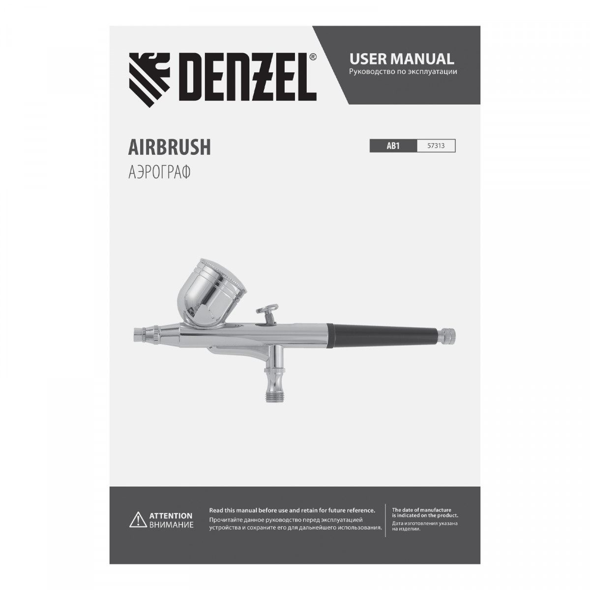Аэрограф с верхним бачком AB1, 0.2/0.3/0.5 мм, 7 мл, 9 л/мин Denzel