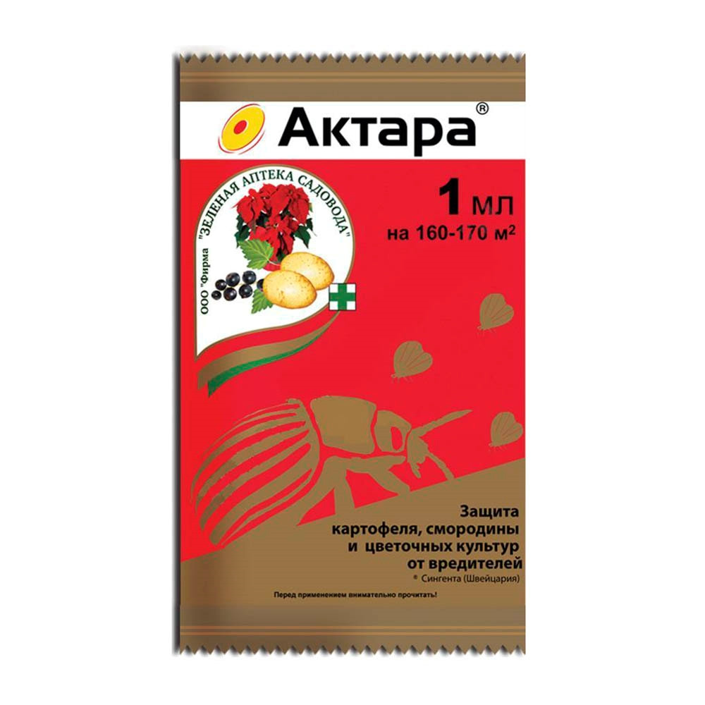 Предназначен для защиты культур от комплекса сосущих и листогрызущих насекомых, против колорадского жука на картофеле, от тли на смородине, от тли, трипса, белокрылки, щитовки и ложнощитовки, почвенных мушек и грибных комариков на горшечных цветочных растениях.