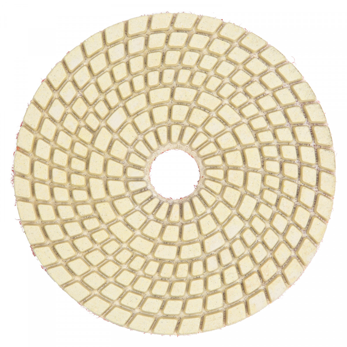 Алмазный гибкий шлифовальный круг Matrix 73508 диаметром 100 мм, с зернистостью P 100, 5 шт. в упаковке, предназначен для мокрого шлифования и используется при проведении строительных, отделочных и художественных работ. Абразив зернистостью P 100 позволяет проводить черновую обработку гранитных, каменных, керамогранитных и мраморных поверхностей. Рабочая часть выполнена из белого термопластика с алмазным напылением и подходит для использования на цветных, преимущественно белых, материалах. Гибкая основа круга облегчает шлифовку рельефных элементов. Круг используется на УШМ с установленной опорной тарелкой для АГШК.