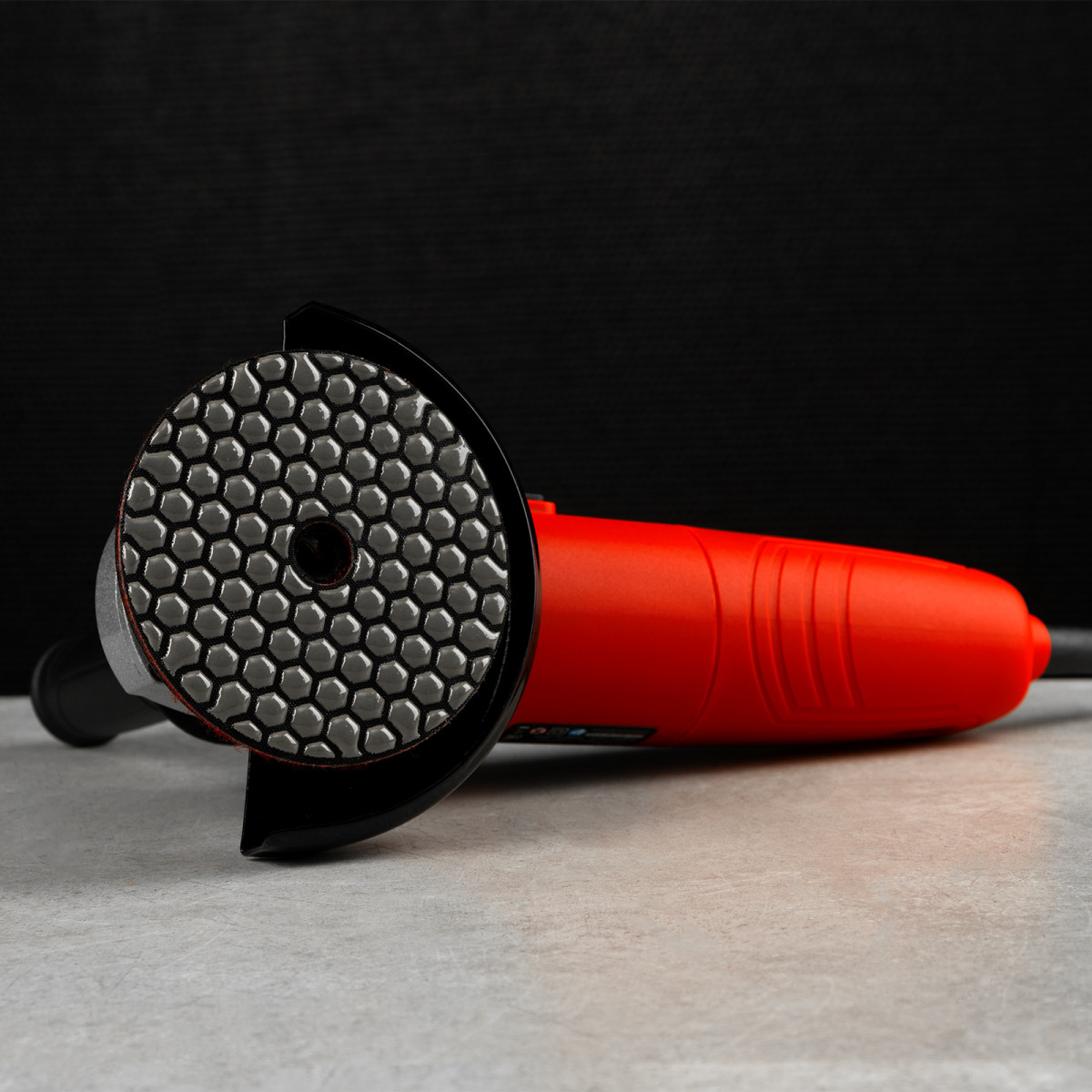 Алмазный гибкий шлифовальный круг Matrix 73506 диаметром 100 мм, с зернистостью P 3000, 5 шт. в упаковке, предназначен для сухого шлифования гранита, мрамора, природного и искусственного камня, керамогранита. Используется на поверхностях разного цвета, в том числе черных. Абразив с зернистостью P 3000 применяется для финишного полирования, позволяет добиться глянцевого блеска материалов. Гибкий круг удобен для обработки предметов сложной формы. Оснастка используется на УШМ с установленной опорной тарелкой для АГШК.