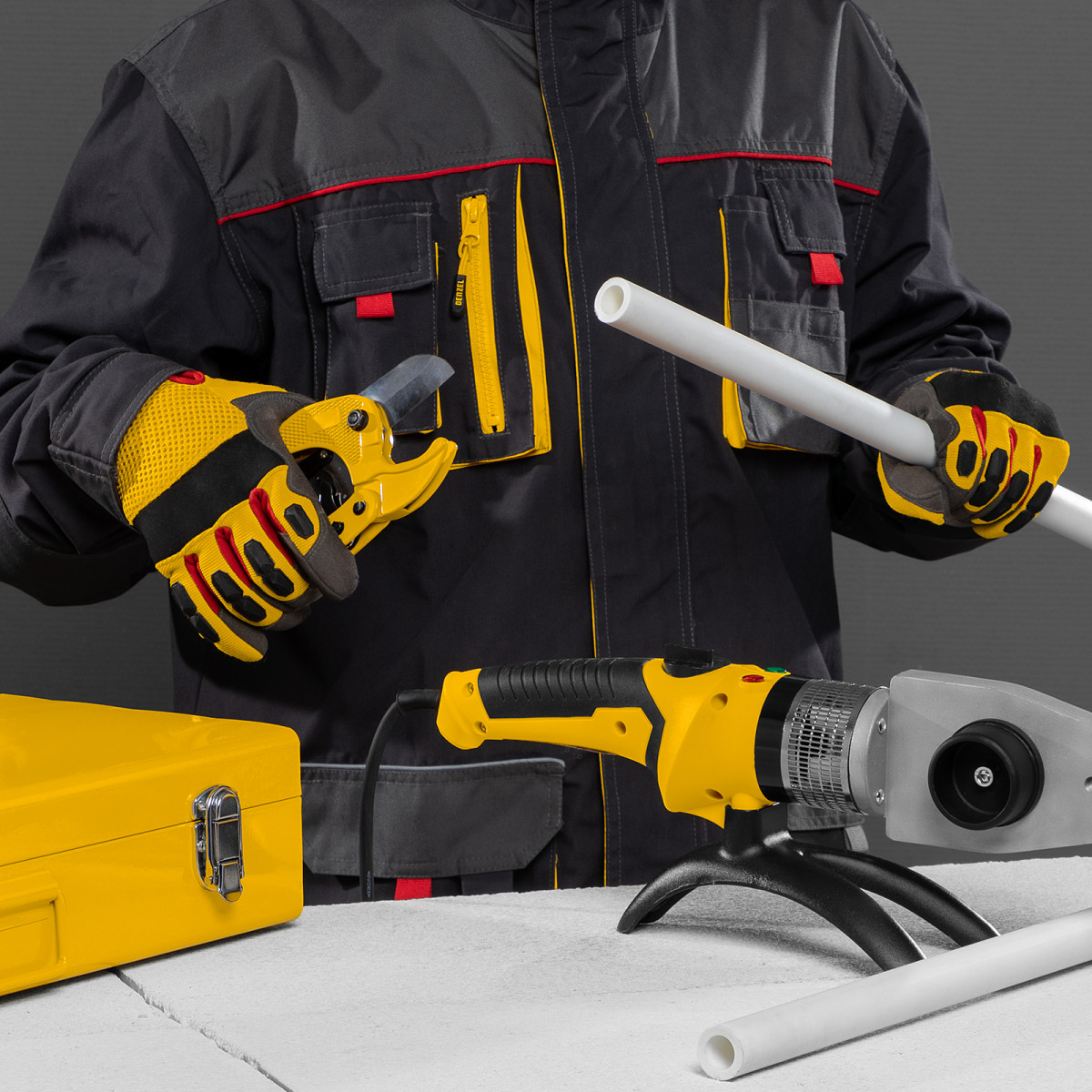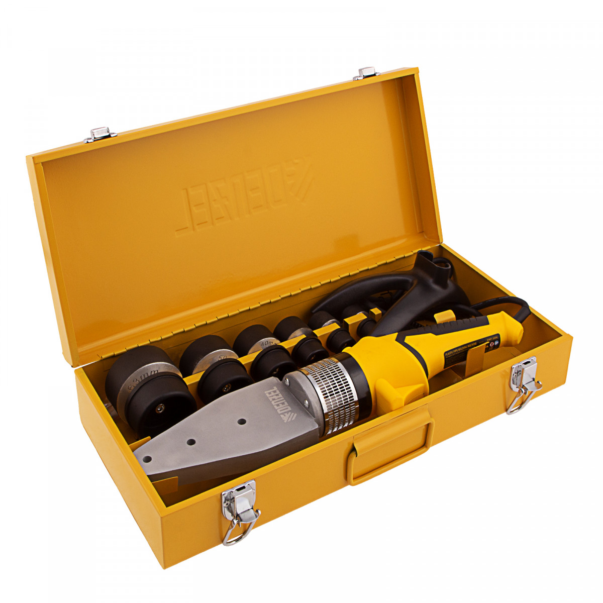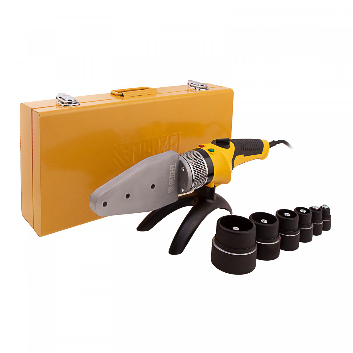 Аппарат для сварки пластиковых труб DWP-2000, Х-Pro, 2000 Вт, 300 град, комплект насадок, 20-63 мм Denzel