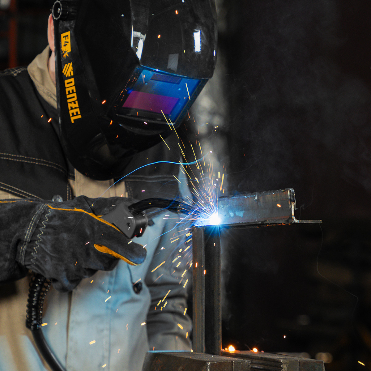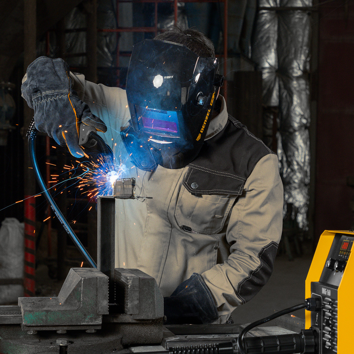 Инверторный аппарат полуавтоматической сварки Denzel IMIG-160 94314 работает со сварочным током до 160 А, характеризуется продолжительностью включения 60% и совместим с катушками до 5 кг. Используется для сварки углеродистых и нержавеющих сталей с использованием постоянного тока. Эффективен для работы с тонкостенными заготовками.,Сварочный аппарат произведен по технологии IGBT, что обеспечивает стабильную и эффективную работу на протяжении длительного времени. Синергетическое управление упрощает работу и позволяет получить сварной шов неизменно высокого качества. Аппарат автоматически подбирает оптимальные значения напряжения, скорости подачи проволоки и другие параметры.