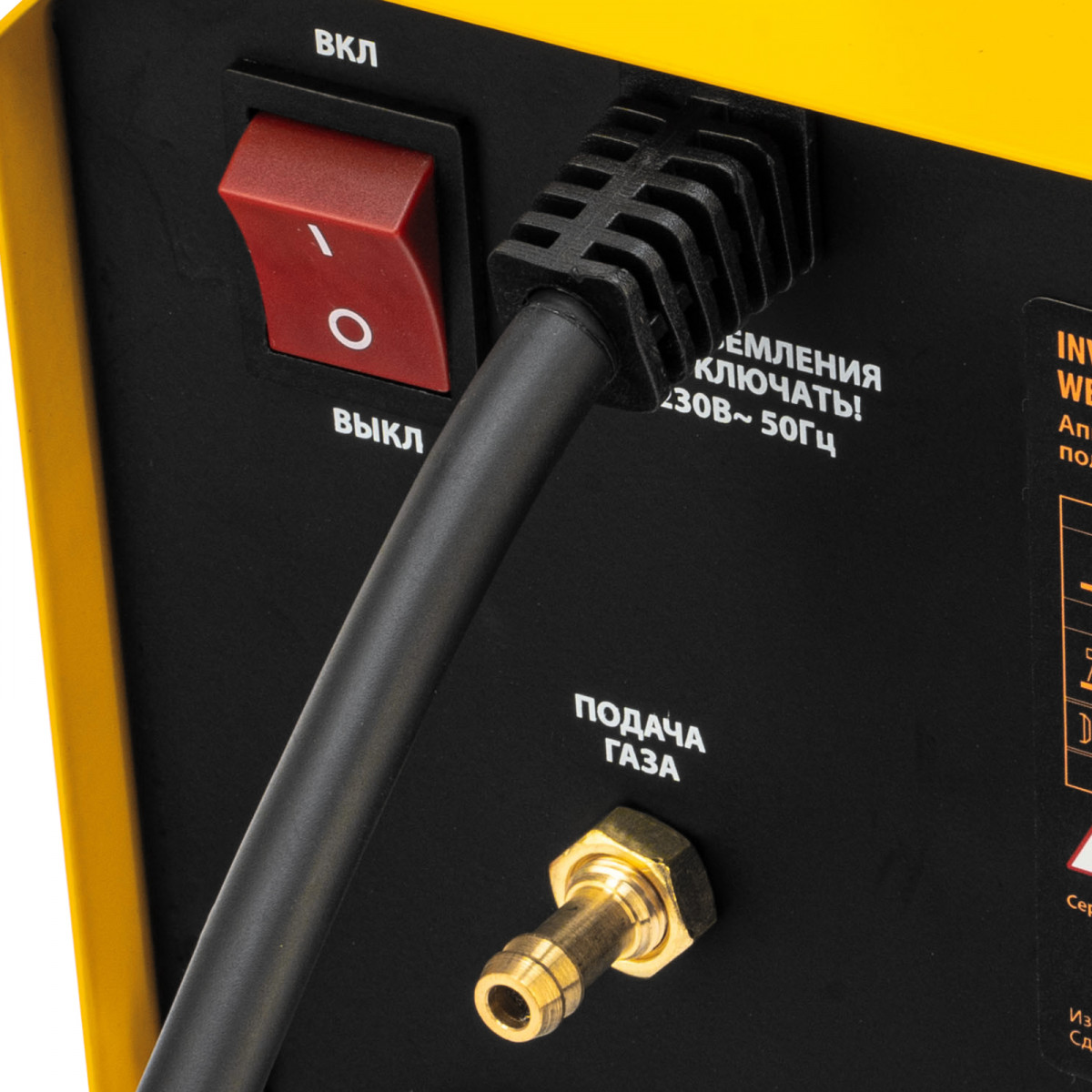 • Продуманная комплектация — аппарат поставляется с газовым шлангом и сварочными проводами (с электрододержателем и зажимом «земля»).