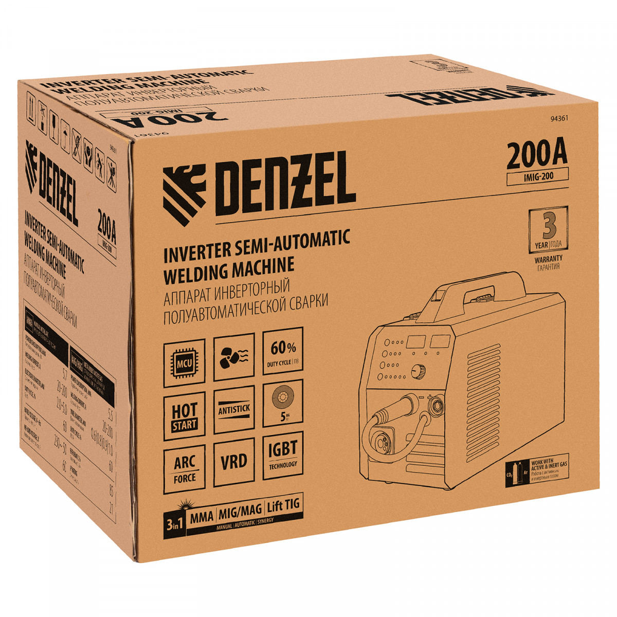 Аппарат инвертор. полуавтомат. cварки IMIG-200, 200 А, ПВ 60%, катушка 5 кг Denzel