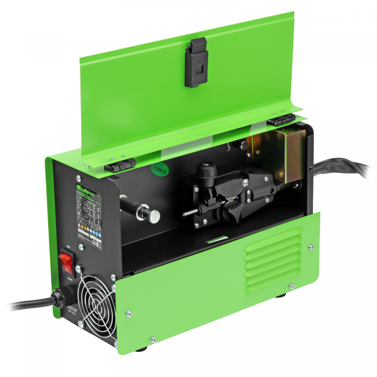 • Компактные расходники — сварочный аппарат совместим с катушками диаметром до 100 мм (1 кг).