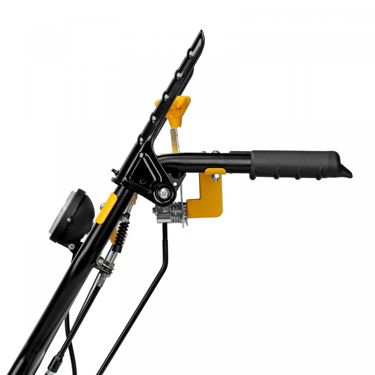 • Надежная конструкция — высокая стальная панель придает жесткость раме и повышает комфорт использования бензинового снегоуборщика.