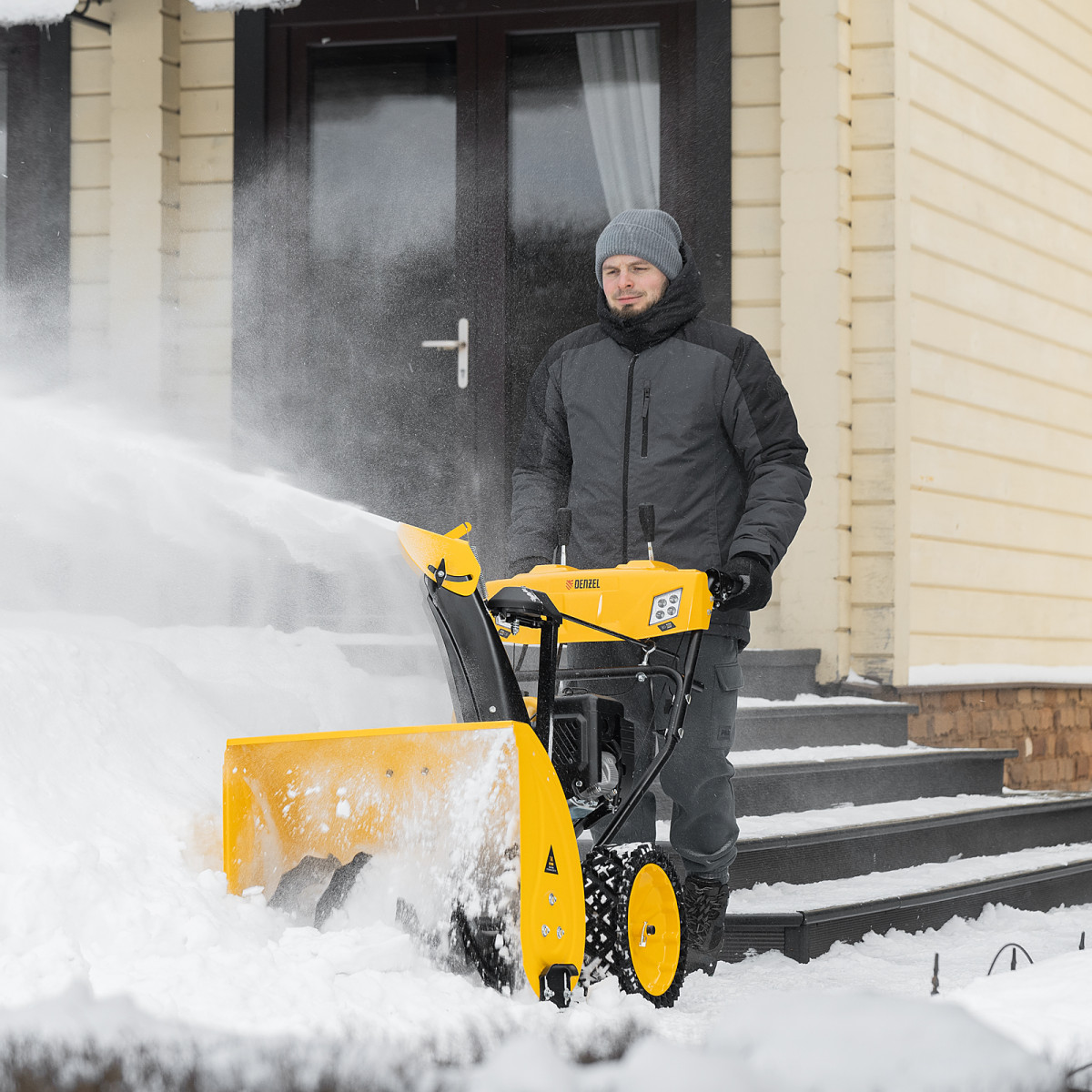 - Экономия сил и времени — снегоуборочная машина оснащена приводом на колеса, а значит, ее не придется толкать во время работы.