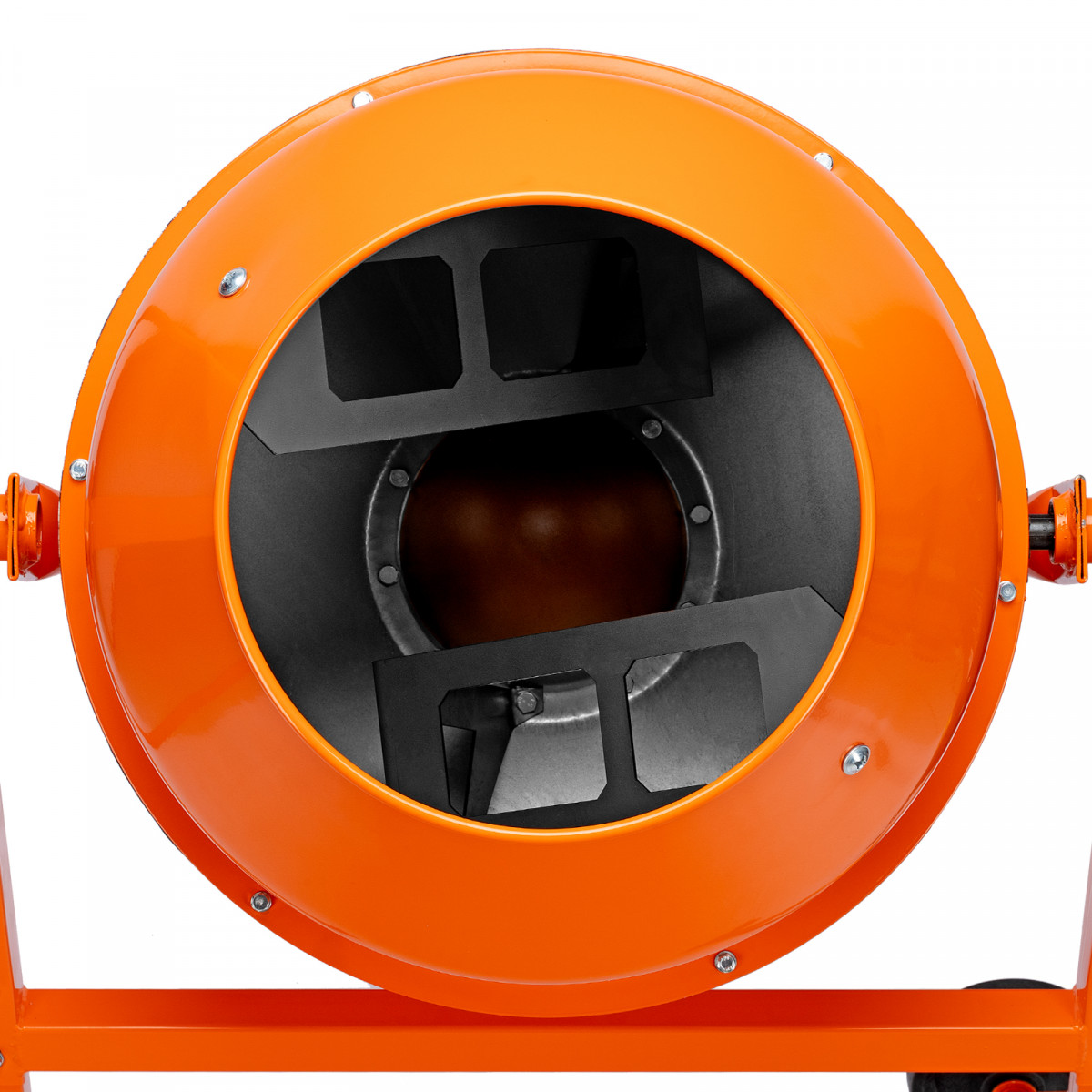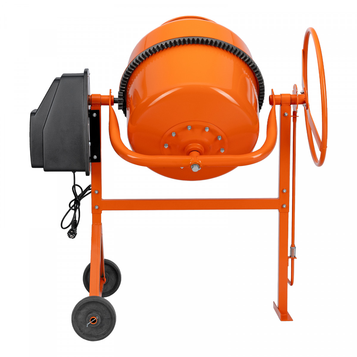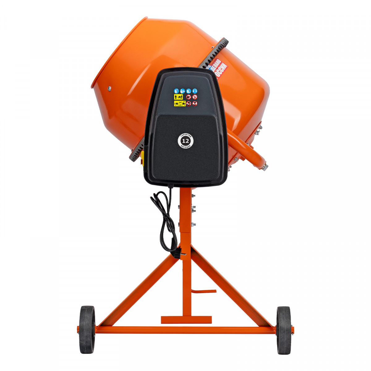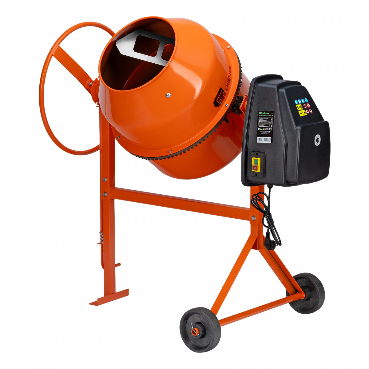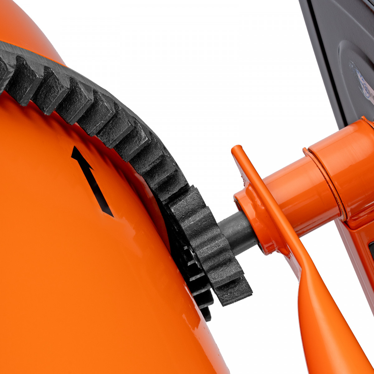 • Удобная загрузка и выгрузка смеси — барабан наклоняется при помощи маховика и легко фиксируется в нужном положении.