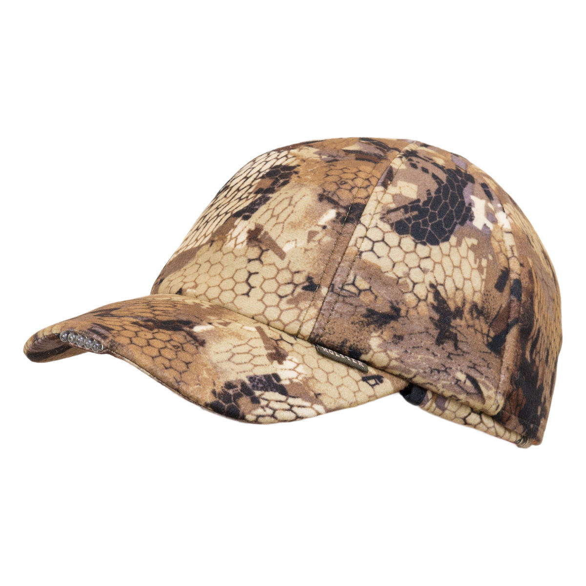 Уникальная утепленная бейсболка со встроенным в козырек фонариком и возможностью трансформации в ярко-оранжевый цвет для безопасности во время охоты. Конструктивные особенности: В козырек встроен портативный фонарик из 5 светодиодов, соединенных с блоком питания, находящимся во встроенном кармашке подклада. Питание осуществляется от двух сменных батареек- таблеток. Кнопка вкл/выкл удобно размещена на самом козырьке. Затылочная часть бейсболки легко отворачивается, изменяя цвет тульи в ярко-оранжевый цвет. Широкий козырек для защиты от дождя и позволяющий вести прицеливание против солнца. Наушники защищают уши от ветра, без необходимости отгибаются вовнутрь бейсболки.