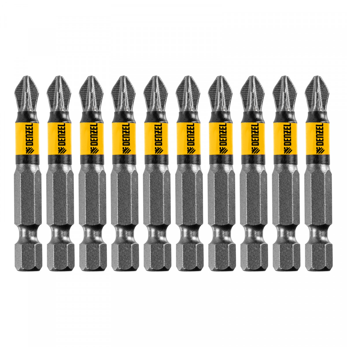 Бита PZ2х50, сталь легированная S2, 10 шт., круглый профиль, отрывная упаковка, , Е 6,3 Denzel