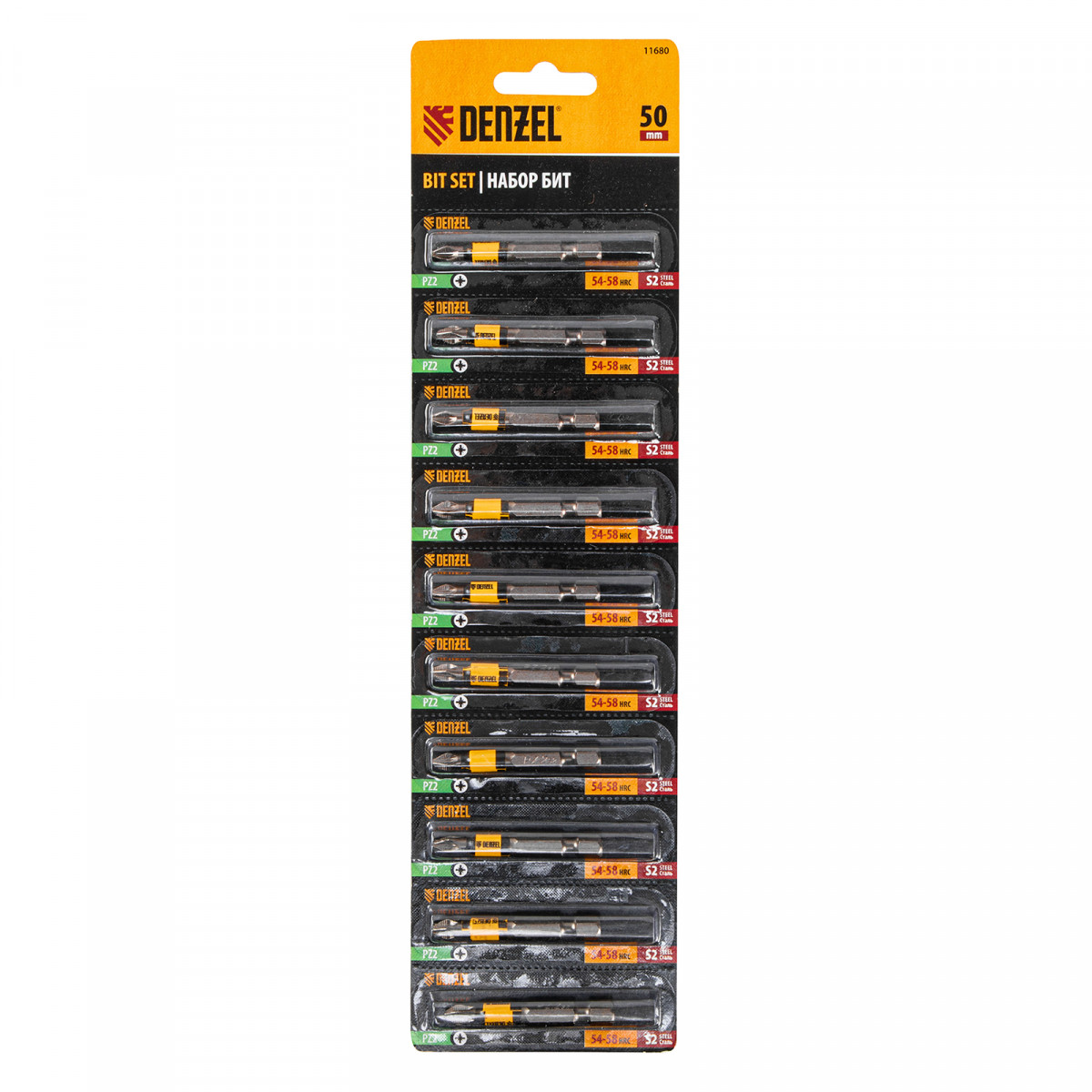 • Защита от подделок — цветное кольцо с логотипом ТМ Denzel на каждой бите подтверждает оригинальность товара.