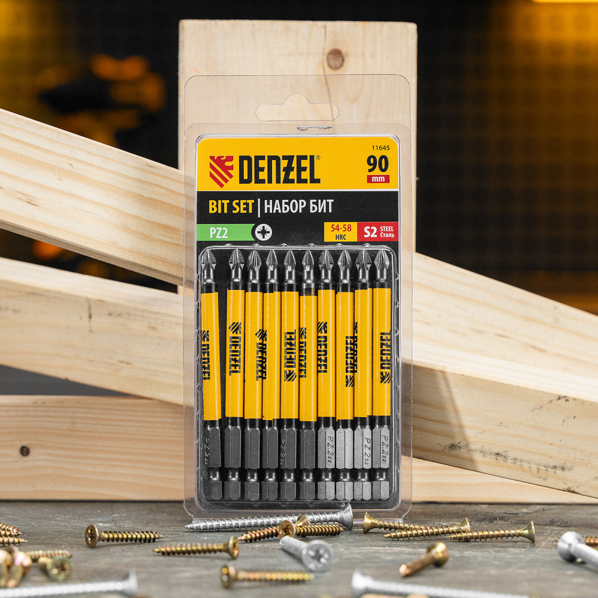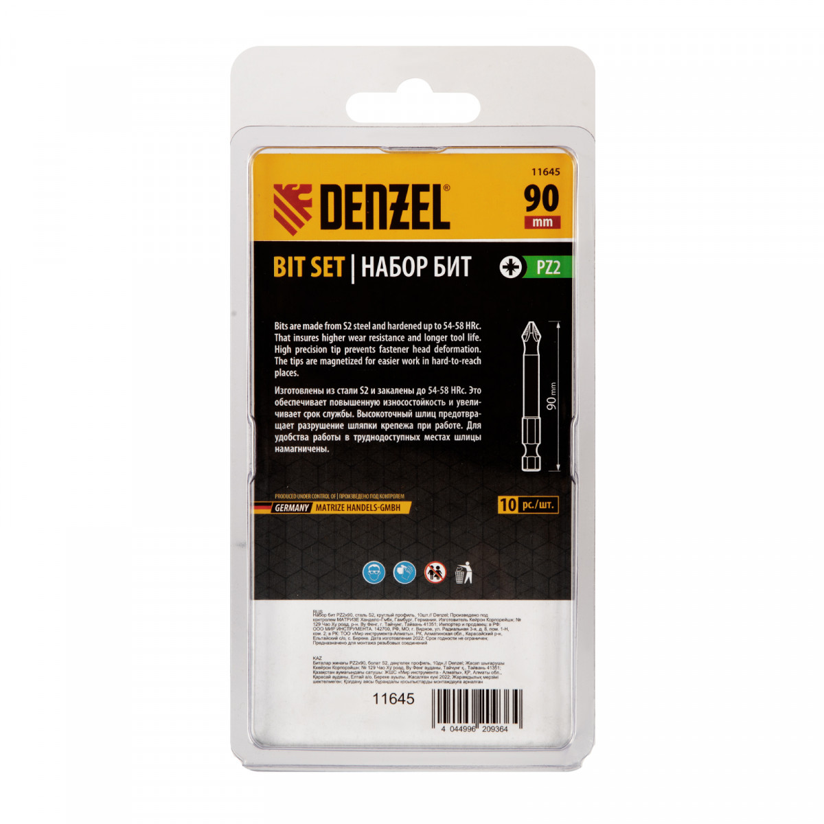 Бита PZ2х90, сталь S2, цилиндр., 10 шт. Е 6,3 Denzel