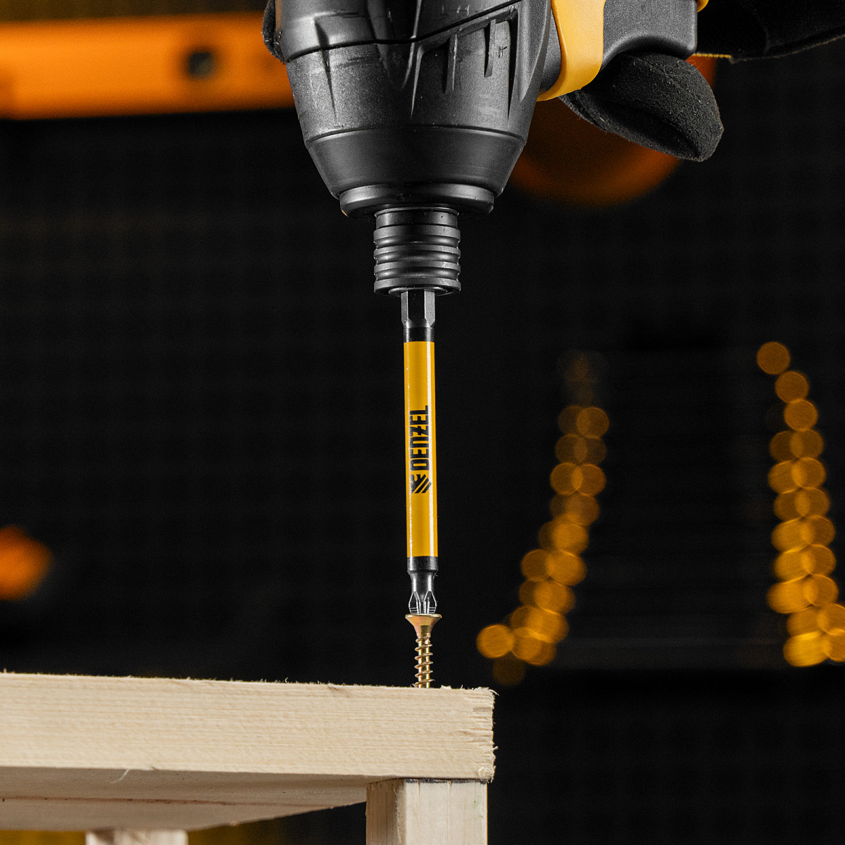 • Высокая результативность даже в ограниченном пространстве — благодаря удлиненному до 90 мм профилю битами удобно работать в труднодоступных местах.