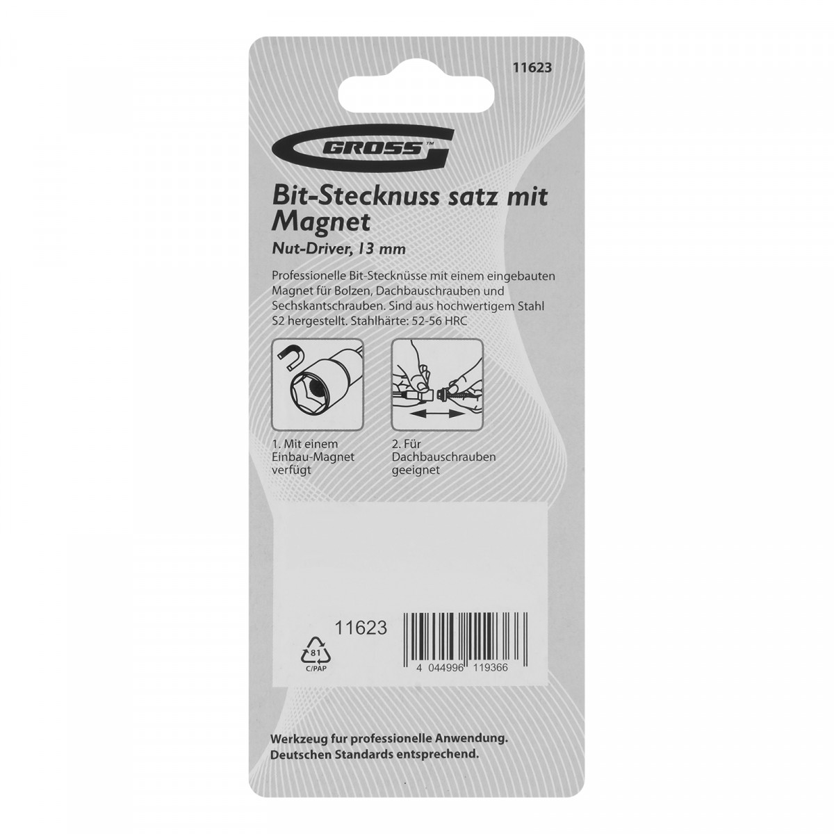 Бита с торцевой головкой, магнит. Nut-Driver, 13 мм, S2 Gross
