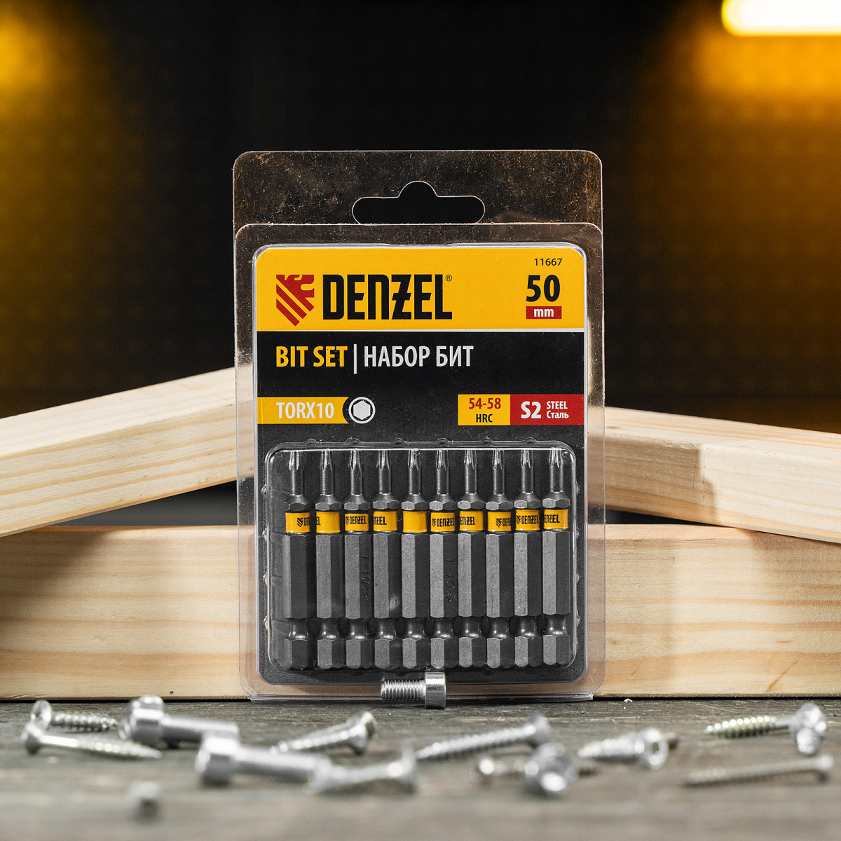 Бита TX 10х50, сталь S2, шестигранный профиль, 10 шт. Е 6,3 Denzel