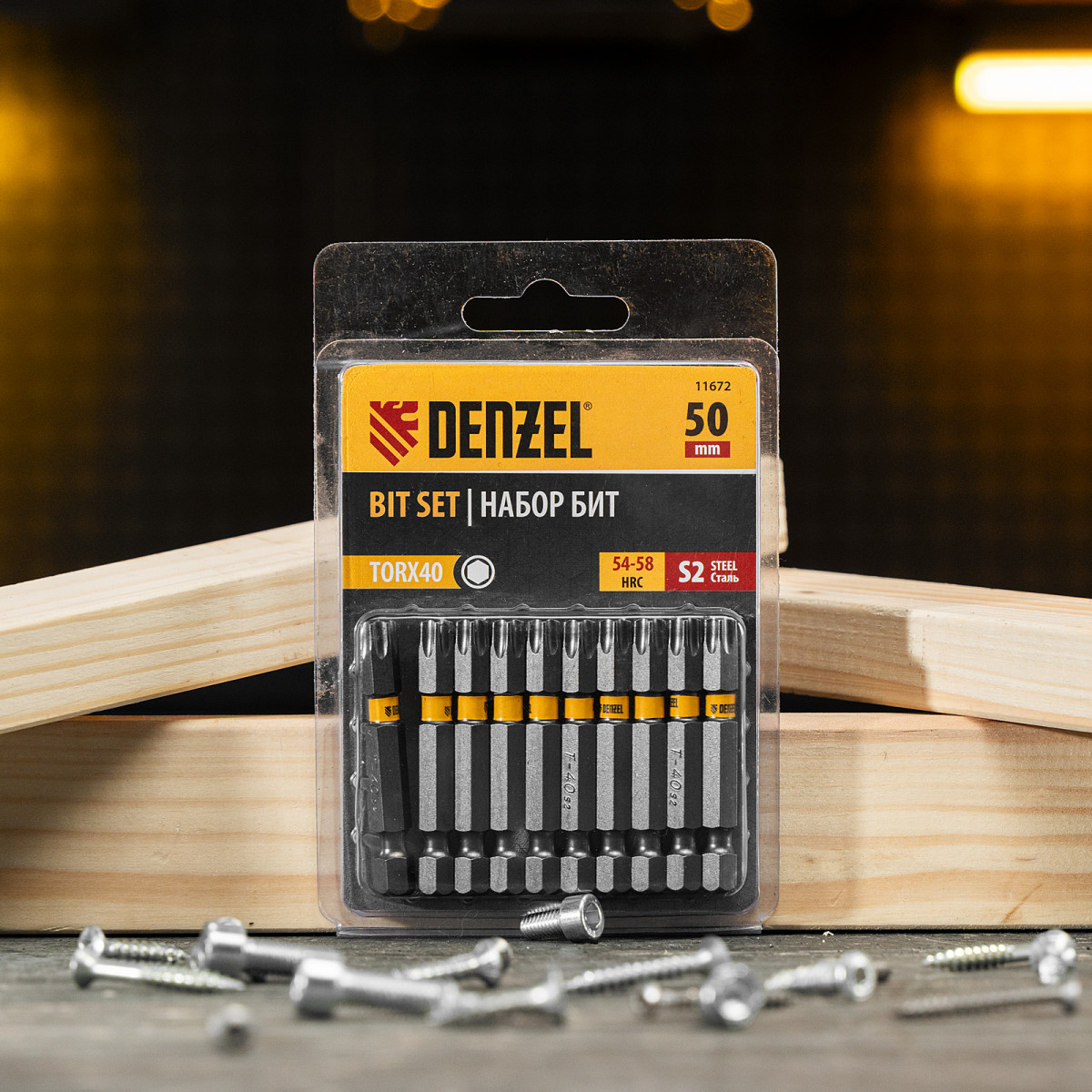 Бита TX 40х50, сталь S2, шестигранный профиль, 10 шт. Е 6,3 Denzel