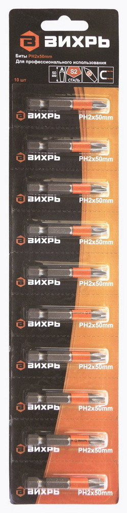 Биты PH2х90 мм Вихрь - предназначена для использования в качестве насадок в шуруповёртах, аккумуляторных отвёртках, ручных и реверсивных отвёртках со сменными насадками.