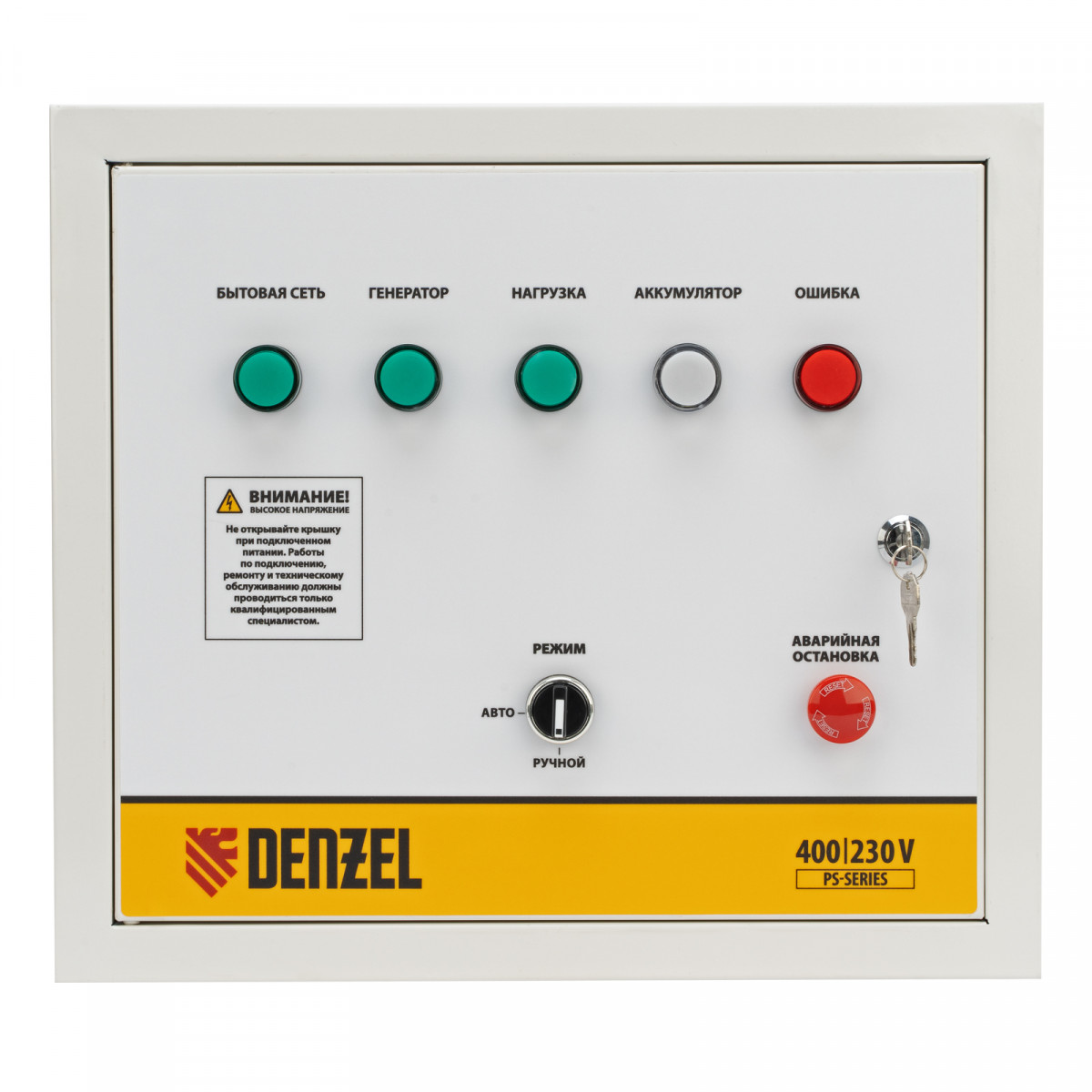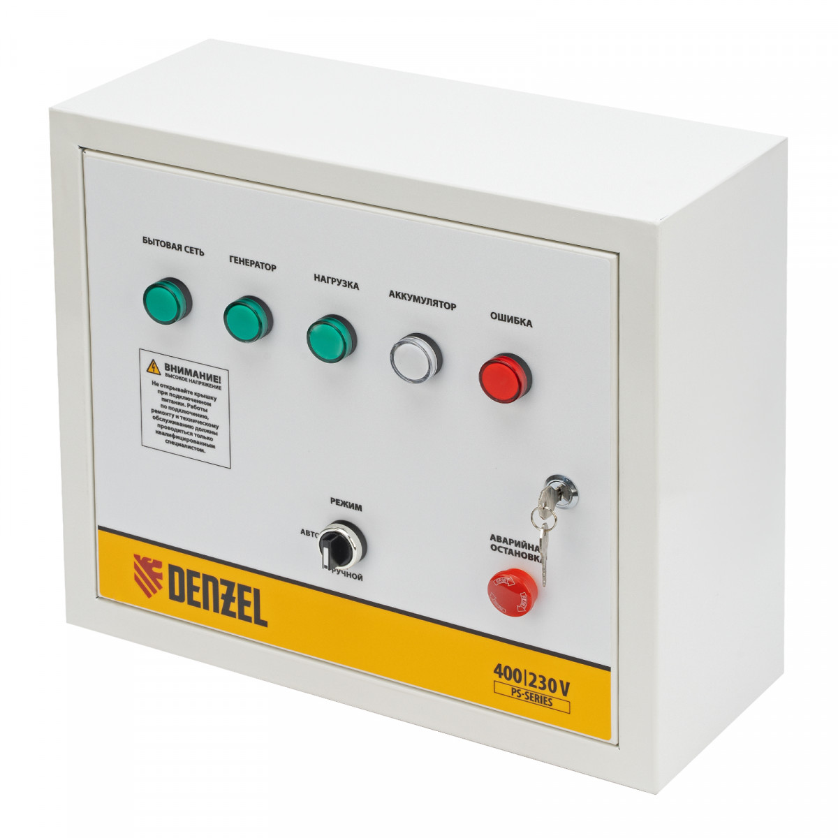 Блок автоматического запуска Denzel PS-180TS 946716 используется совместно с генератором PS-180EA или PS-180EAD-3. Позволяет создать систему автономного электроснабжения. Блок управления переключает питание на генератор при падении напряжения в стационарной сети, а при восстановлении электроснабжения останавливает генератор и переключает питание объекта обратно на сеть. Устройство рассчитано на нагрузку 20 кВА и будет полезно в загородном доме и на строительной площадке.