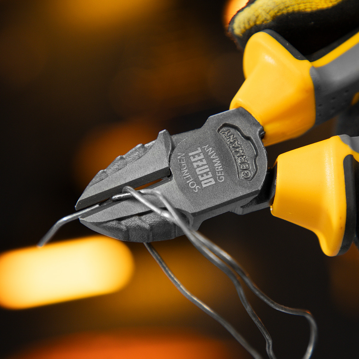 Бокорезы Denzel 17781 длиной 160 мм, с трехкомпонентными рукоятками, предназначены для разрезания кабелей из алюминия и меди, а также проволоки и стяжек. Максимальный диаметр перерезаемой мягкой проволоки (алюминиевой, медной, с пределом прочности 220 Н/мм2) составляет 6 мм, проволоки средней жесткости и гвоздей (750 Н/мм2) — 3,5 мм, жесткой (1800 Н/мм2) — 2 мм. Бокорезы используются для проведения слесарных и монтажных работ. Шарнир смещен к режущим кромкам, что позволяет сэкономить 20% усилий и максимально эффективно решать поставленные задачи.
