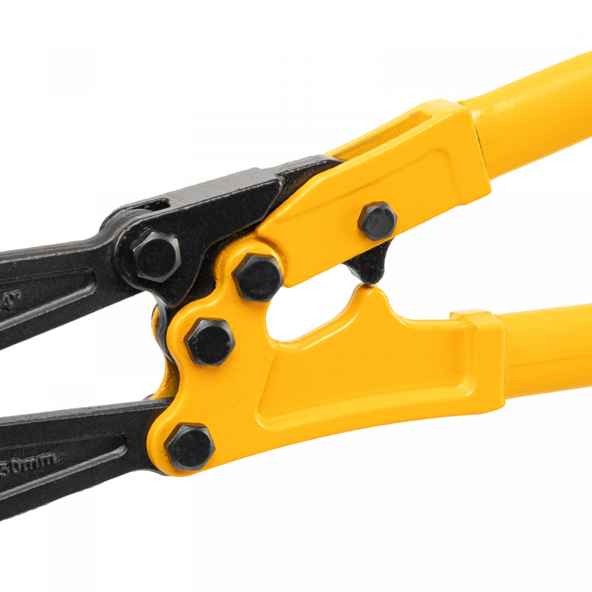 Болторез Denzel 78533 длиной 350 мм (14 дюймов), из стали Cr-Mo, предназначен для перекусывания стальных прутков диаметром 6,4 мм, болтов и шурупов, тросов, разнородной проволоки.