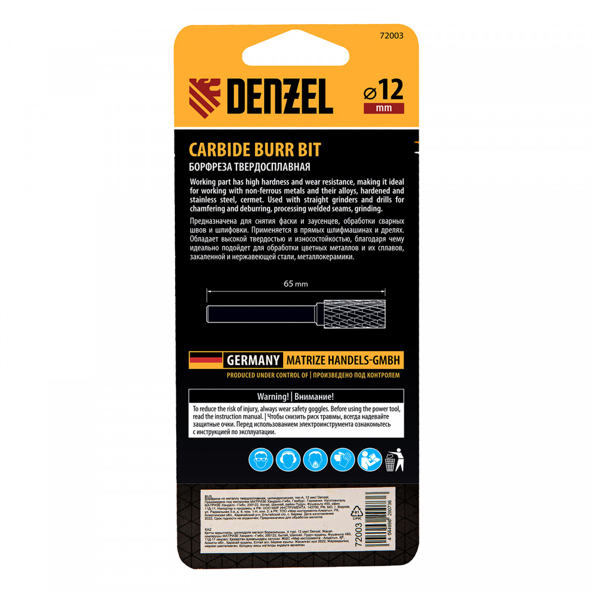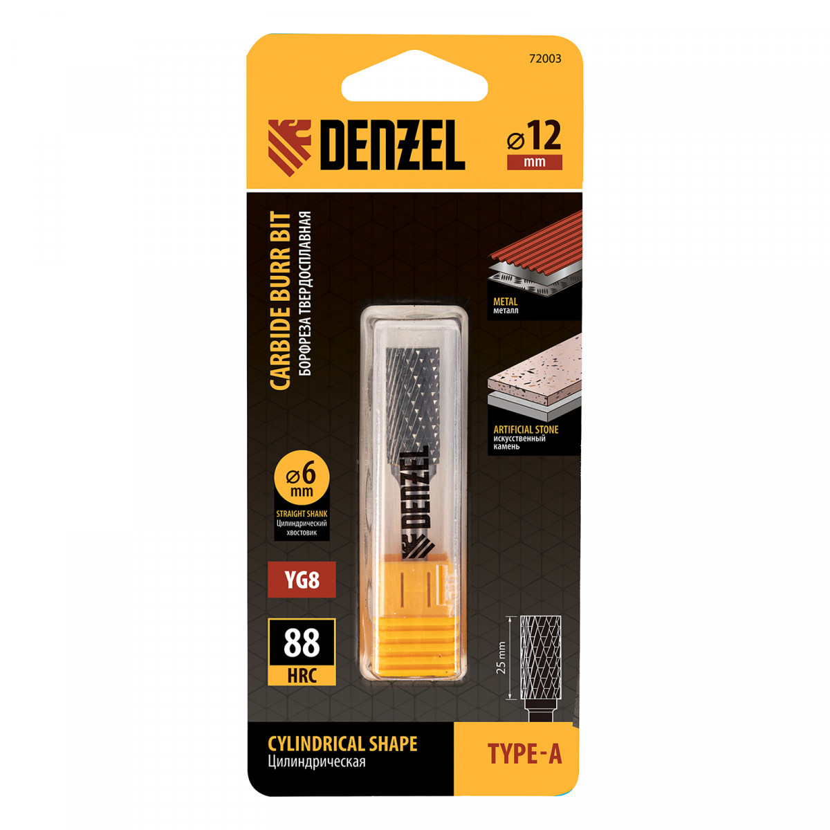 Борфреза по металлу твердосплавная, цилиндрическая, тип-А, 12 мм Denzel