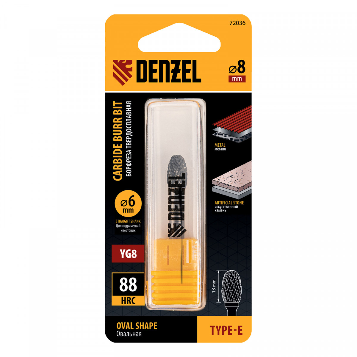 Борфреза по металлу твердосплавная, овальная, тип-E, 8 мм Denzel