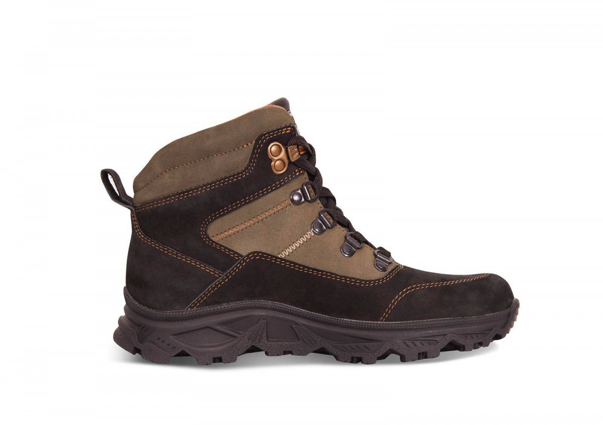 Модель подходит для длительных пеших прогулок как в городе, так и на природе. В дизайне прекрасно сочетаются гидрофобный нубук и натуральная кожа. Подклад выполнен из шерстяного меха. Подошва ТЭП с глубоким самоочищающимся протектором. Надёжная металлическая фурнитура и шнурки тройного плетения.