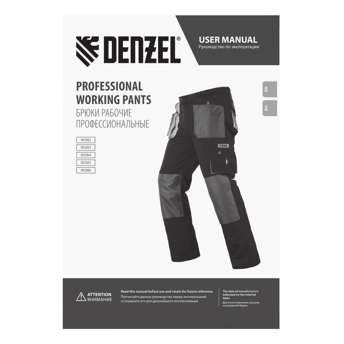 Тройные усиленные швы и дополнительные вставки обеспечивают высокую прочность брюк Denzel 90386.