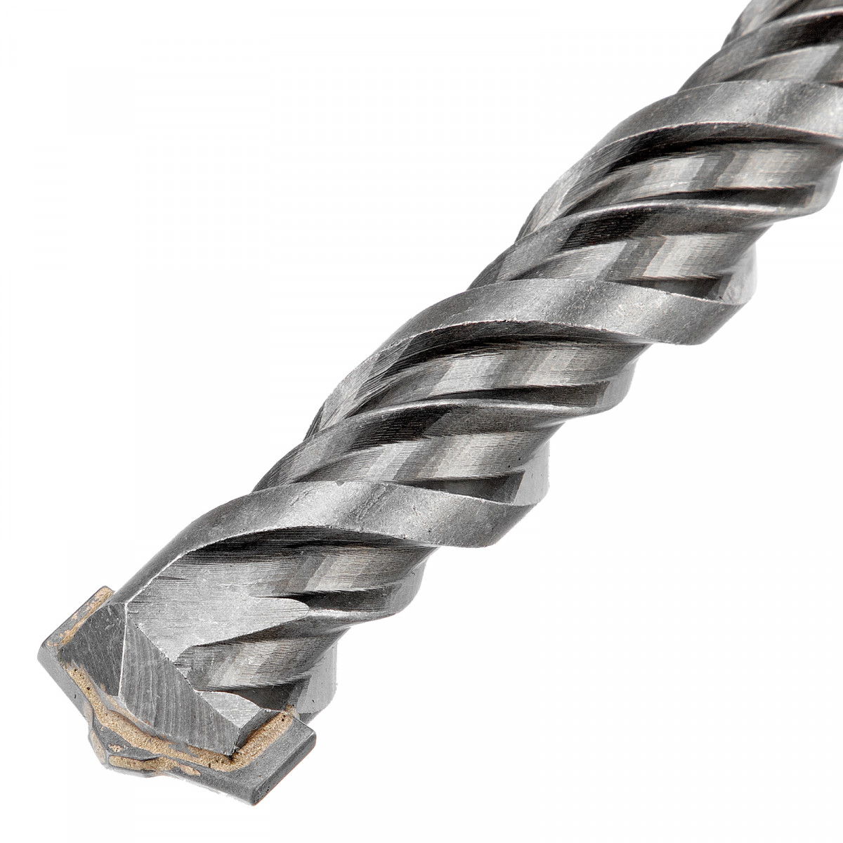 • Рабочая часть изготовлена из легированной стали 40Х с добавлением хрома, поэтому инструмент устойчив к высоким нагрузкам, возникающим при ударном сверлении.