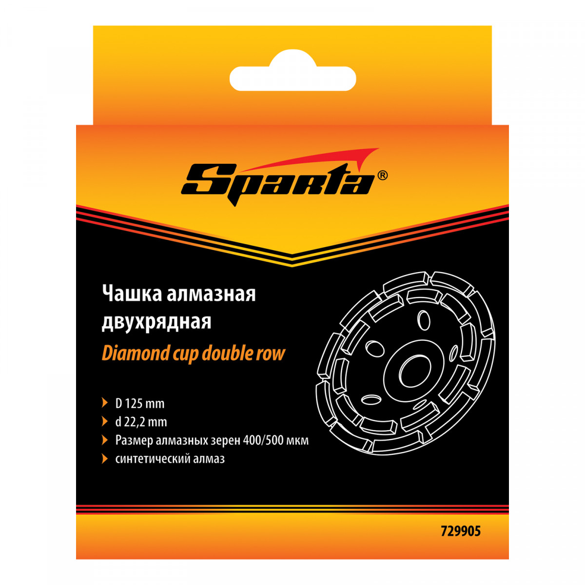 Чашка алмазная зачистная, 125 мм, двухрядная Sparta