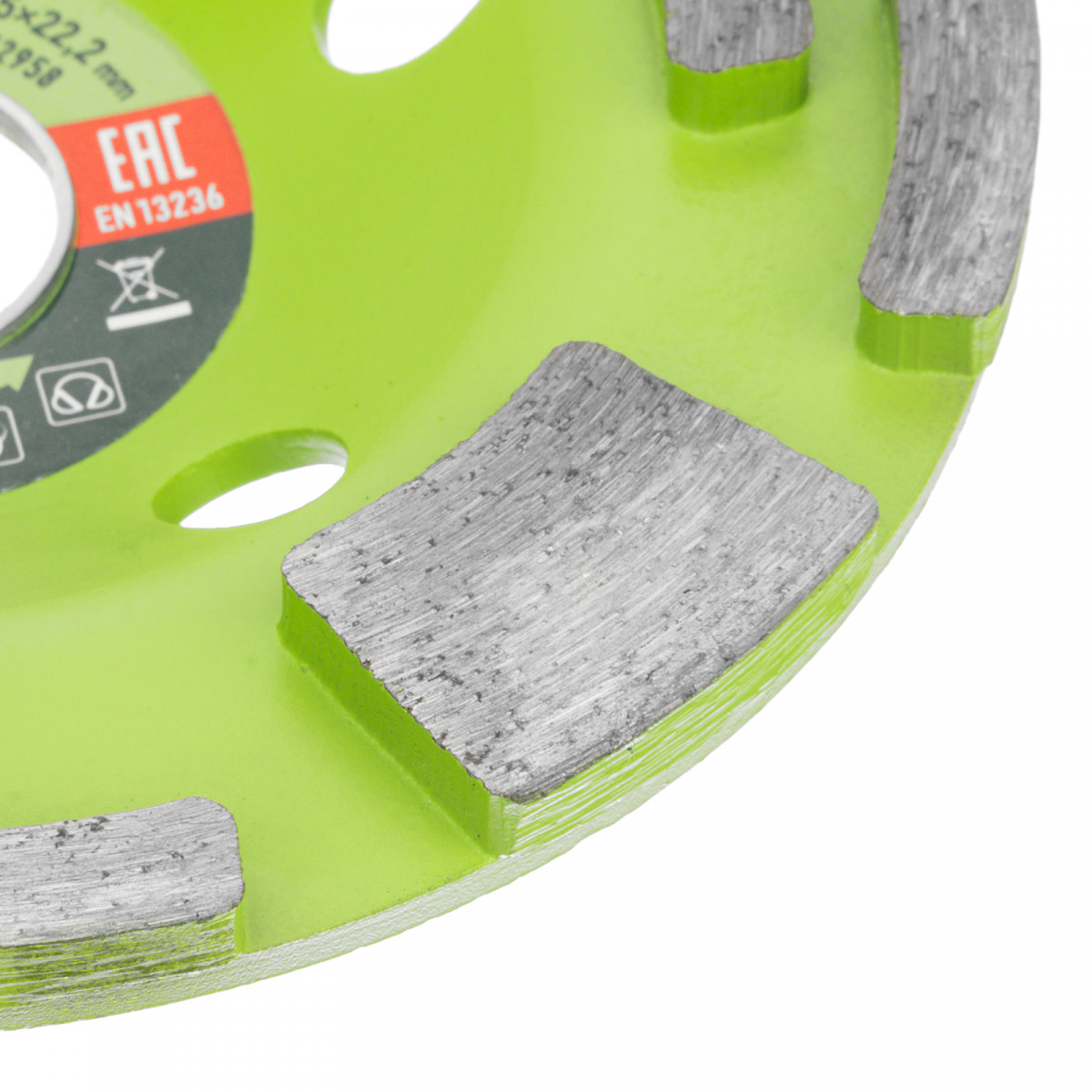 • Высокий ресурс — высота сегментов составляет 5 мм, концентрация высокопрочных синтетических алмазов — 20%.