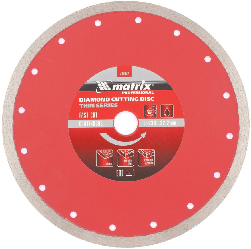 Диск 230*22,2 мм алмазный мокрая резка отрезной сплошной тонкий "MATRIX"