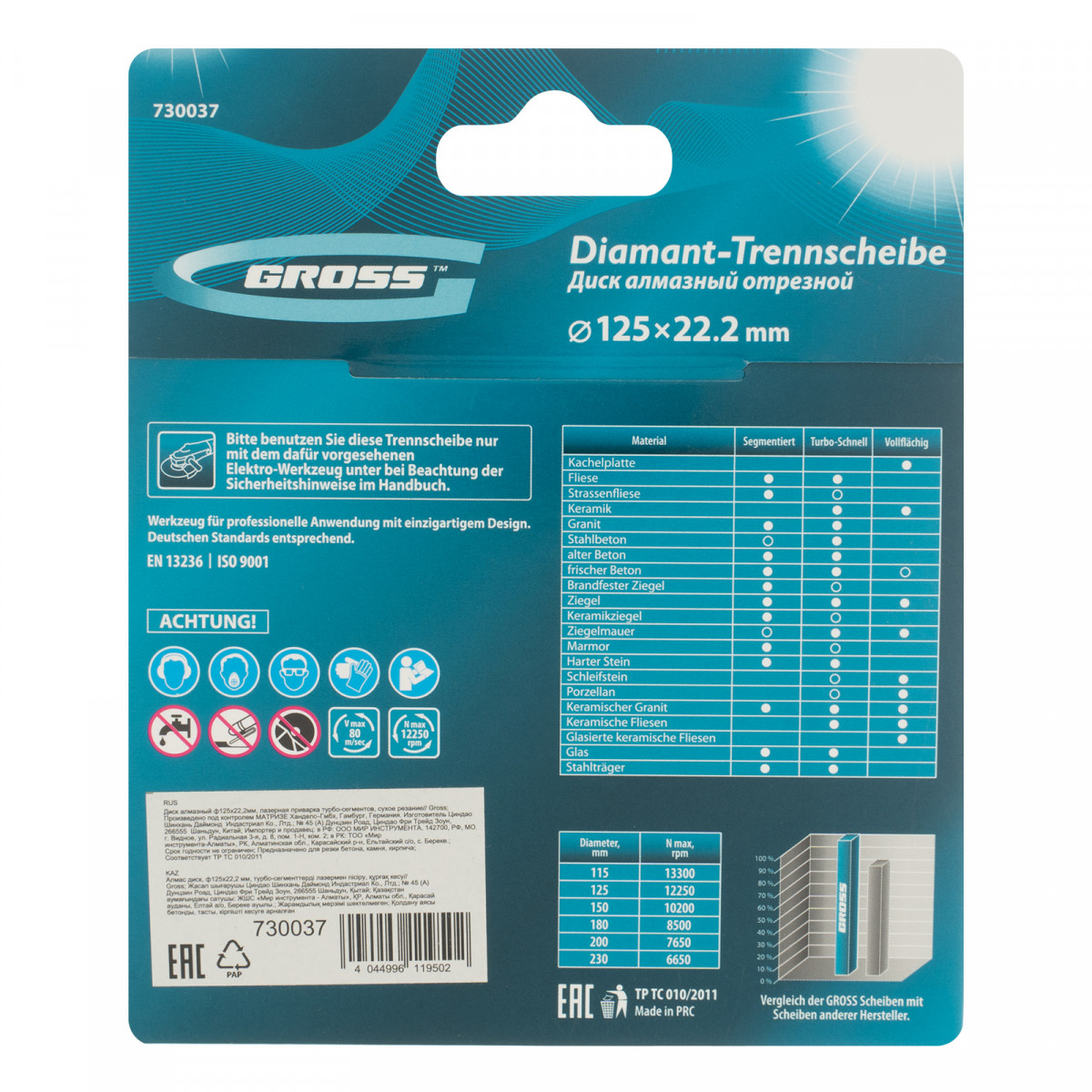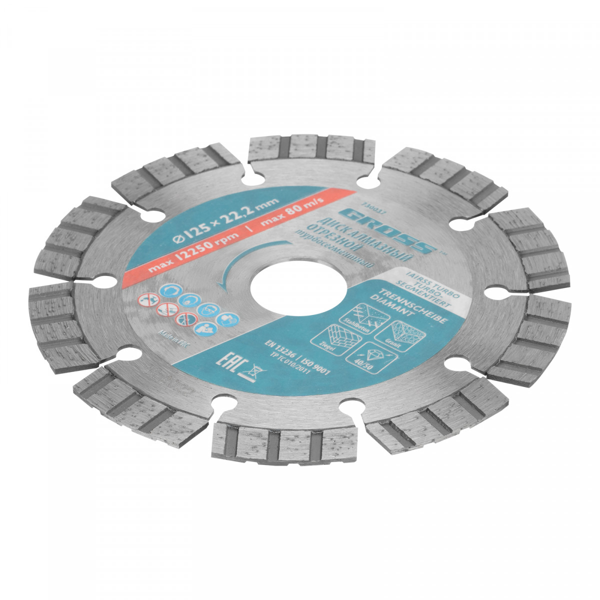 Диск алмазный, 125 х 22.2 мм, лазерная приварка турбо-сегментов, сухая резка Gross