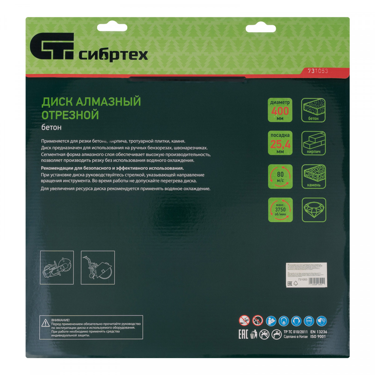 Диск алмазный 400 х 25.4 мм, "Бетон", сухой/мокрый рез Сибртех