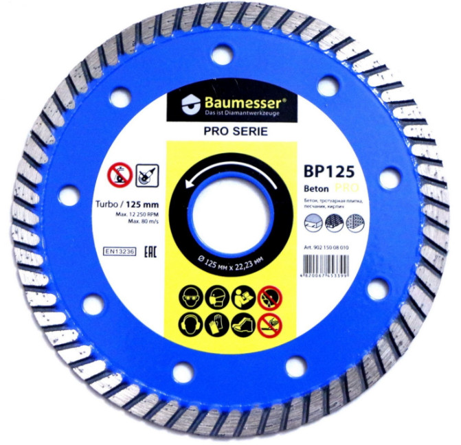 Диск алмазный BAUMESSER 125×2,2×8×22,2 Turbo Beton PRO