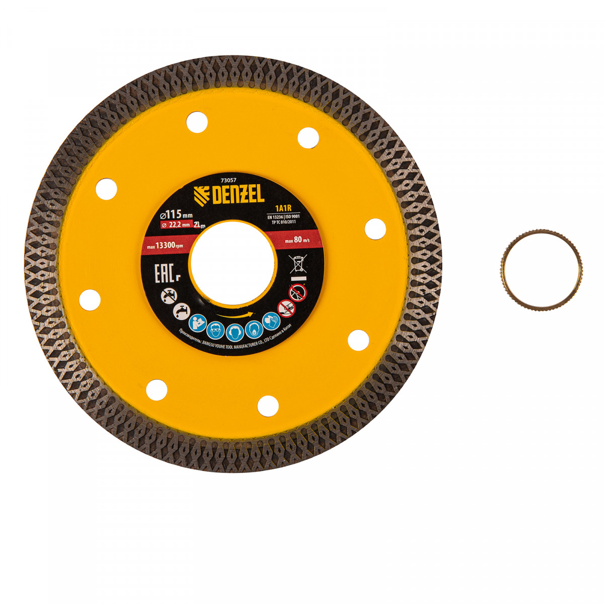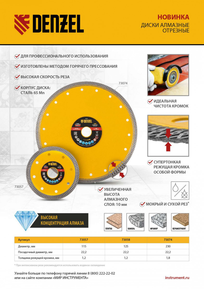 Диск алмазный отрезной 115 х 22,2мм, сплошной, супертонкий, горячий пресс, сухой/мокрый рез Denzel