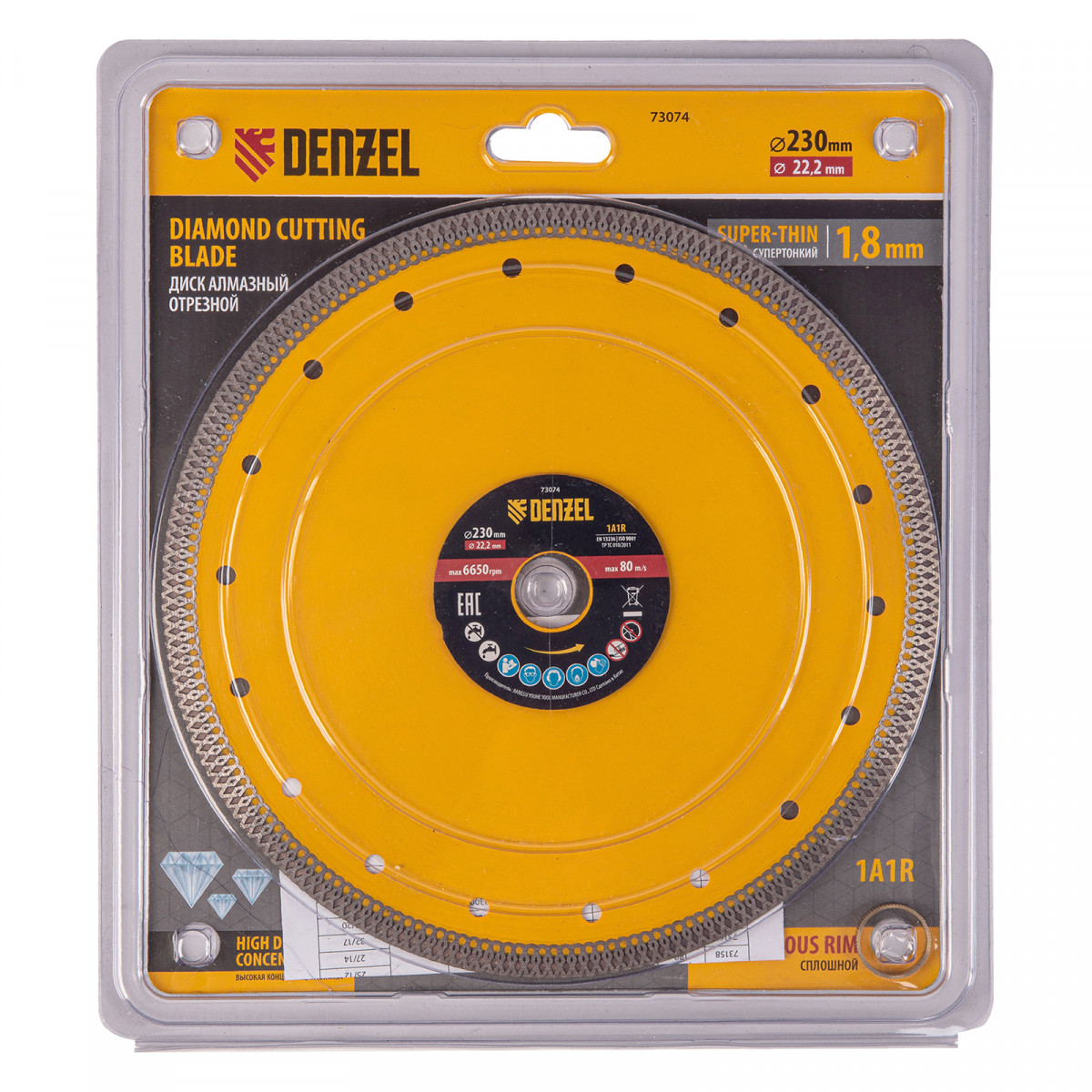 Диск алмазный отрезной 230 х 22,2мм, сплошной, супертонкий, горячий пресс, сухой/мокрый рез Denzel