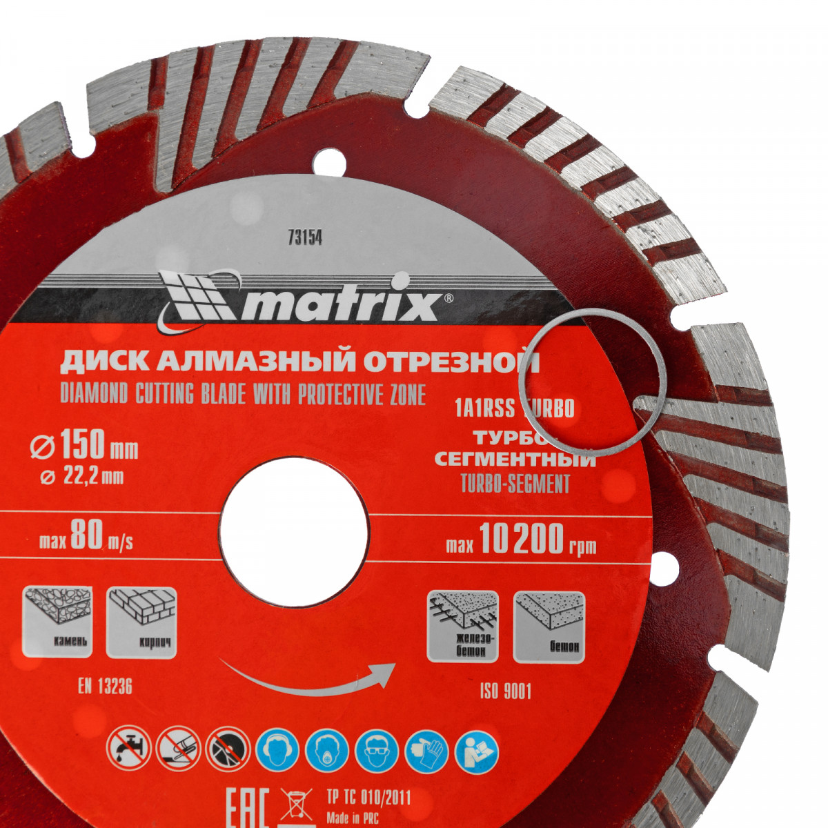 Диск алмазный, отрезной сегментный с защитными сект, 150 х 22.2 мм, сухая резка Matrix Professional