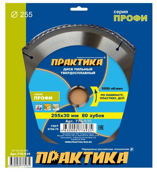 Диск пильный 255*30 мм 80 зубьев по ламинату, пластику, ДСП "Практика"