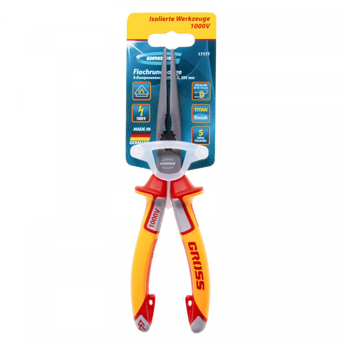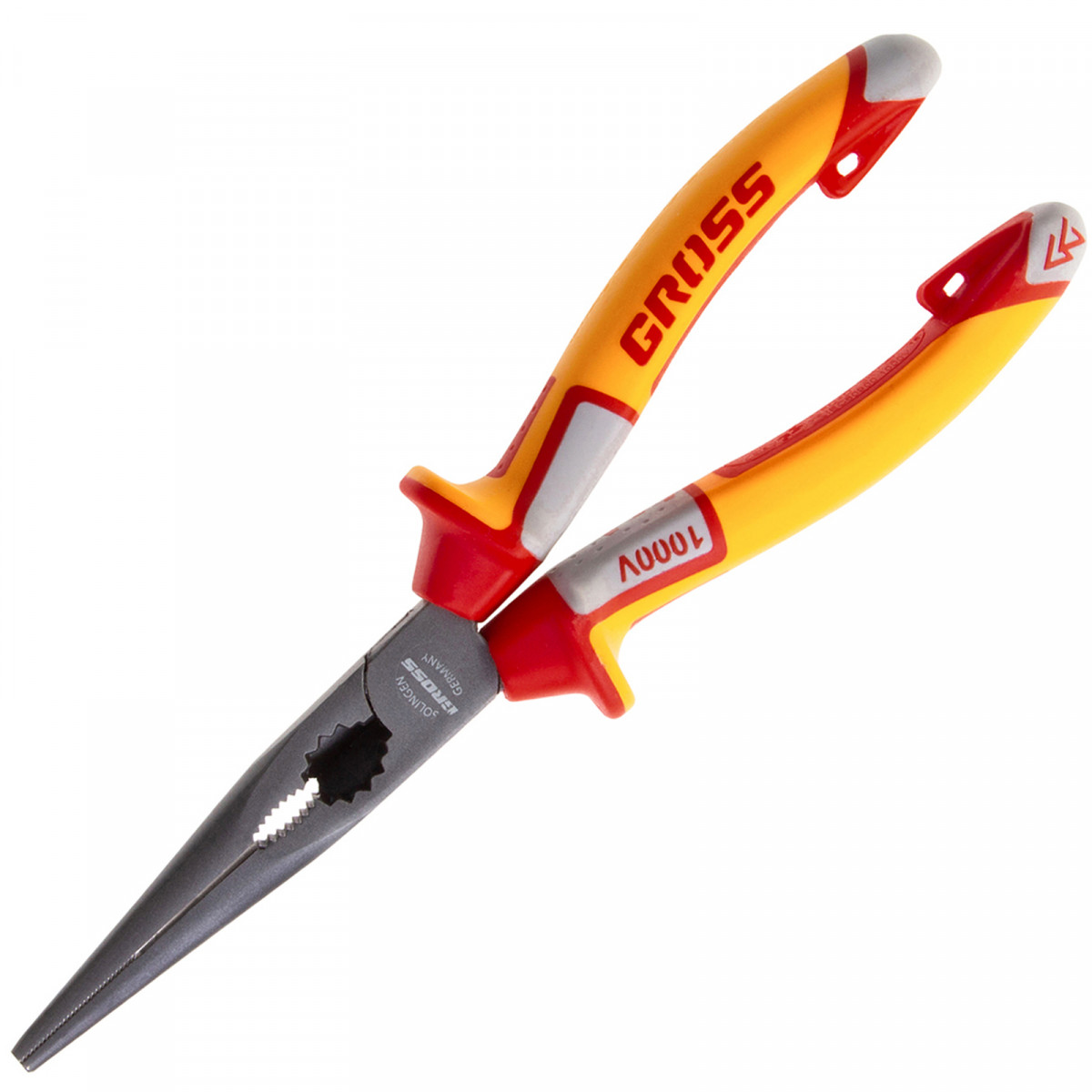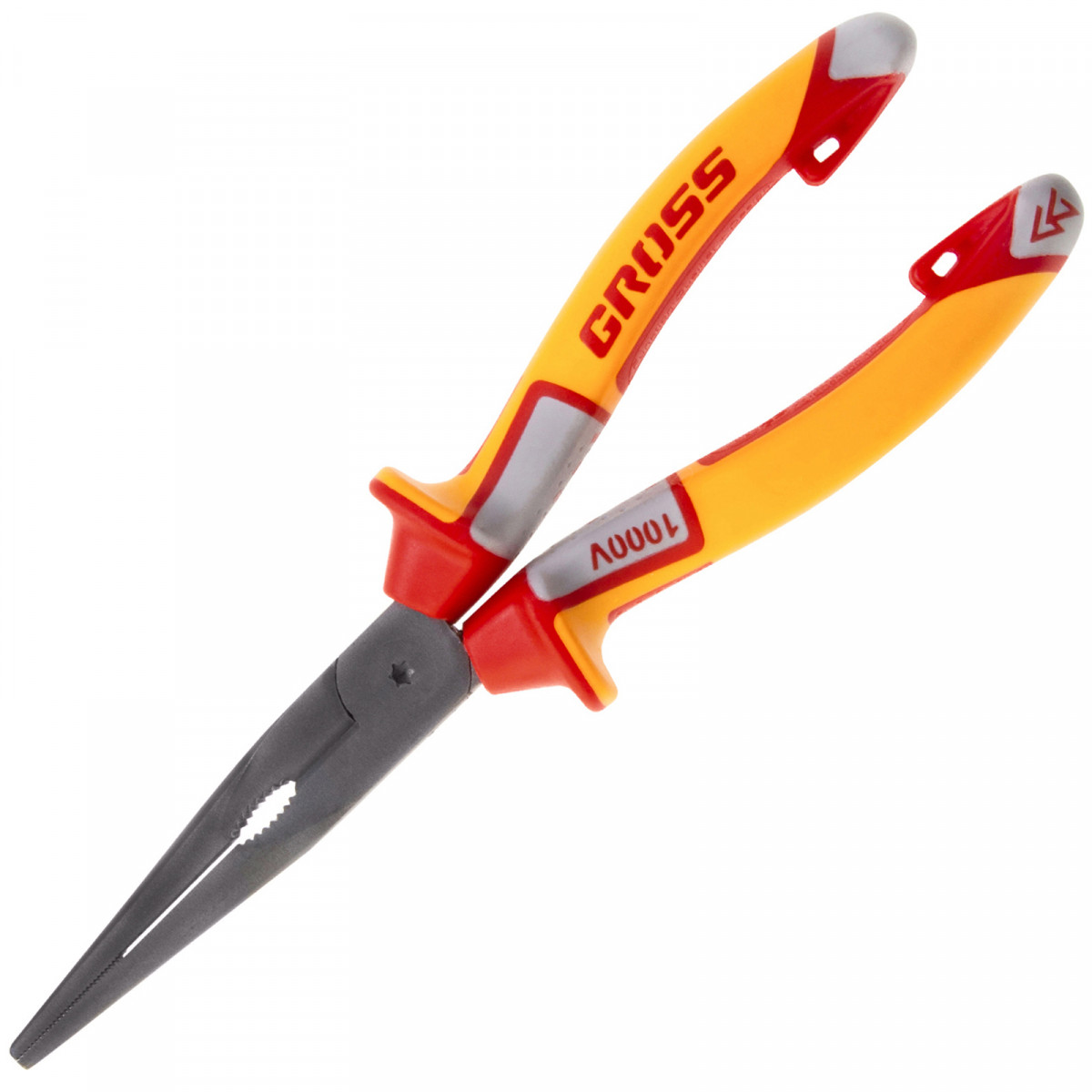 Длинногубцы прямые, диэлектрические рукоятки до 1000 В, трехкомпонентные рукоятки, 205 мм Gross