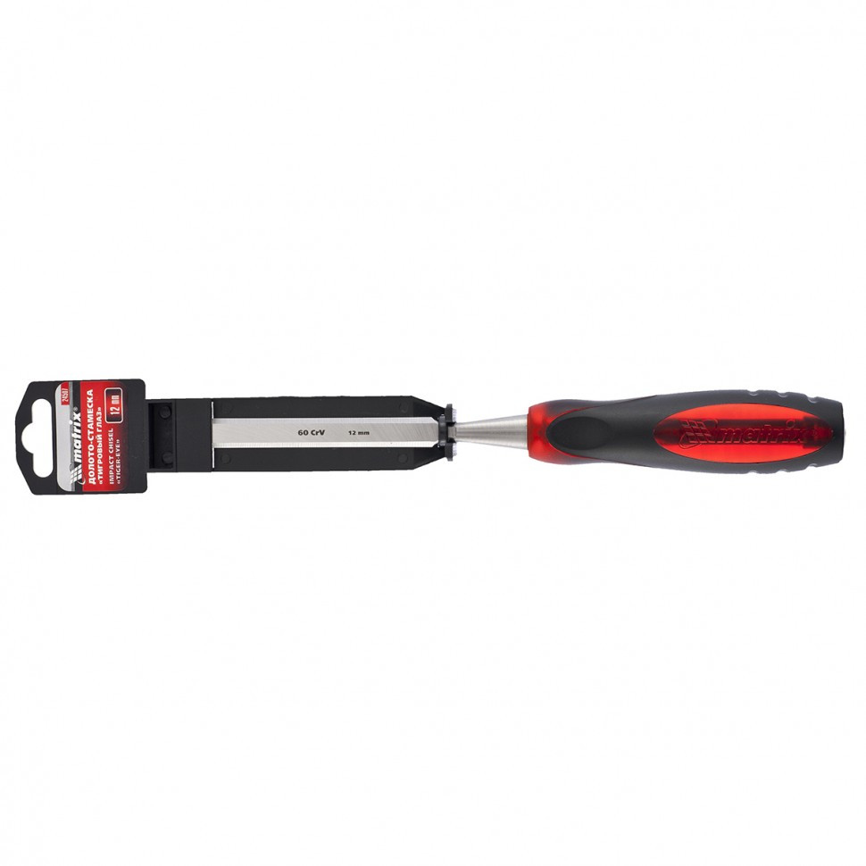 Долото-стамеска Matrix «Тигровый глаз» 24507 с полотном шириной 12 мм и двухкомпонентной обрезиненной рукояткой используется в столярном и плотницком деле, в производстве мебели. Позволяет вырезать углубления, формировать пазы, зачищать шипы и гнезда, снимать фаски. Инструмент выдерживает удары киянкой или молотком, т. к. металлический затыльник защищает его от деформации. Долото относится к профессиональному ручному инструменту, но может применяться и в домашних условиях.