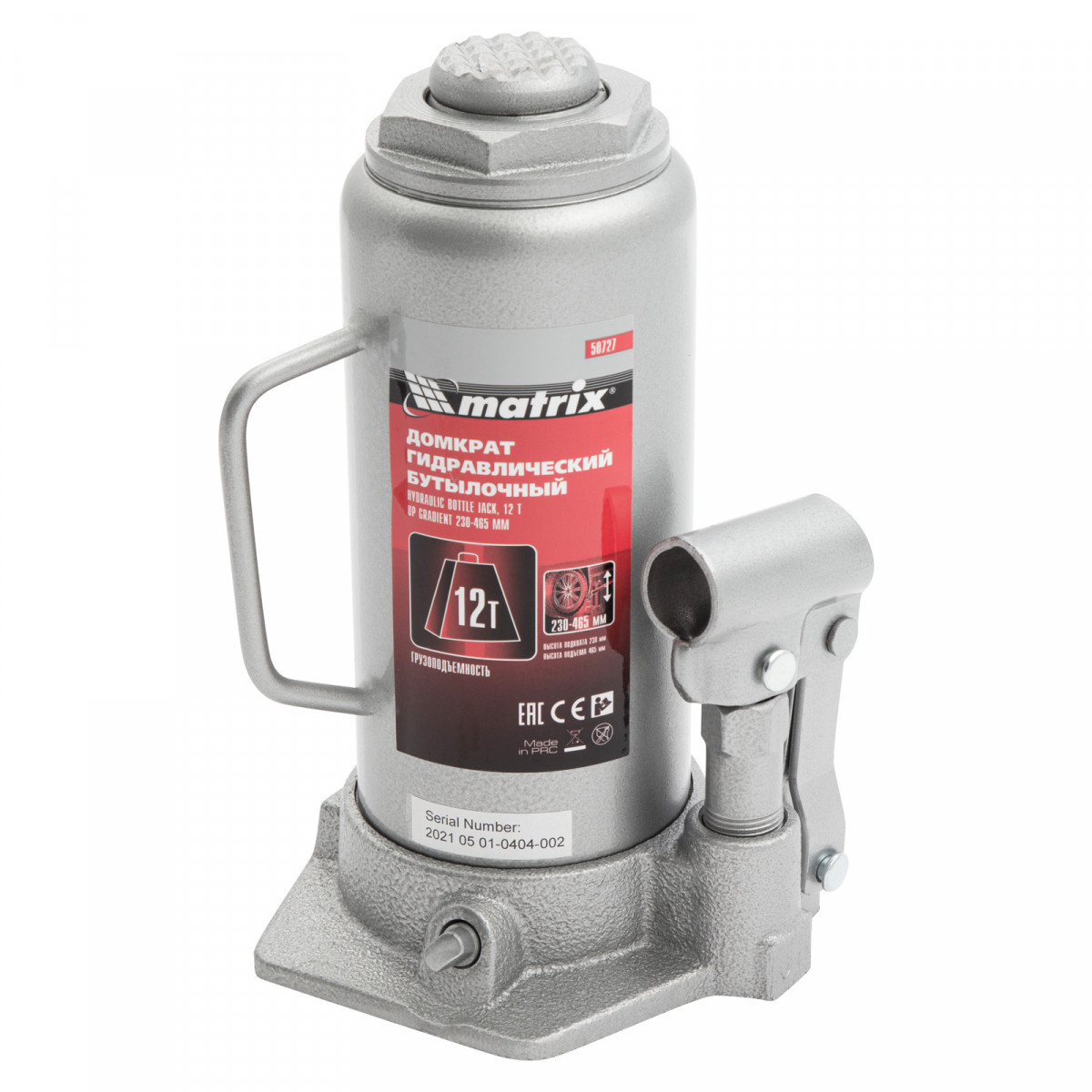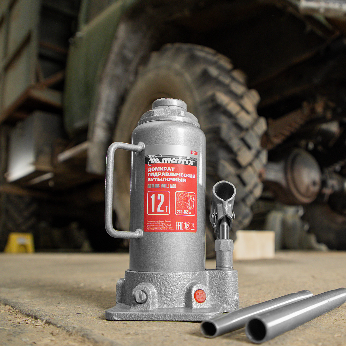 Домкрат гидравлический бутылочный Matrix 50727 используется для поднятия грузов массой до 12 т на высоту 230-465 мм. Подходит для автомобилей с высоким клиренсом. Домкрат будет полезен автолюбителям в гараже и дороге, а также сотрудникам СТО.