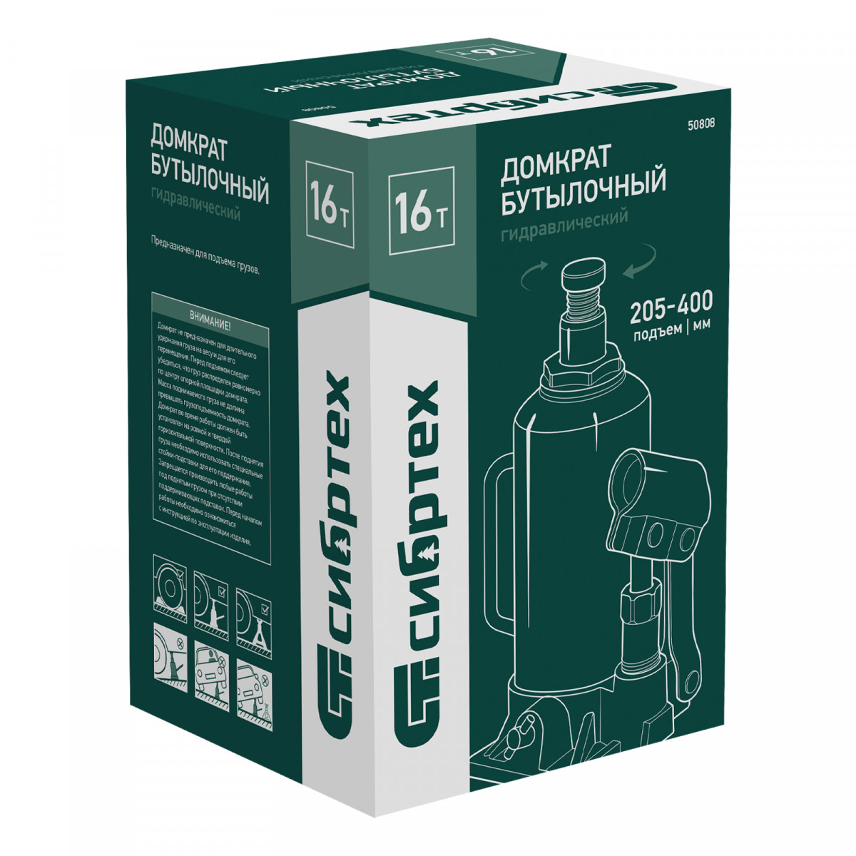 Домкрат гидравлический бутылочный Сибртех 50808 предназначен для подъема грузов массой до 16 т на высоту от 205 до 400 мм. Не требует больших усилий от пользователя и значительно облегчает рабочий процесс. Домкрат будет полезен при проведении техобслуживания машины в автосервисе или гараже.