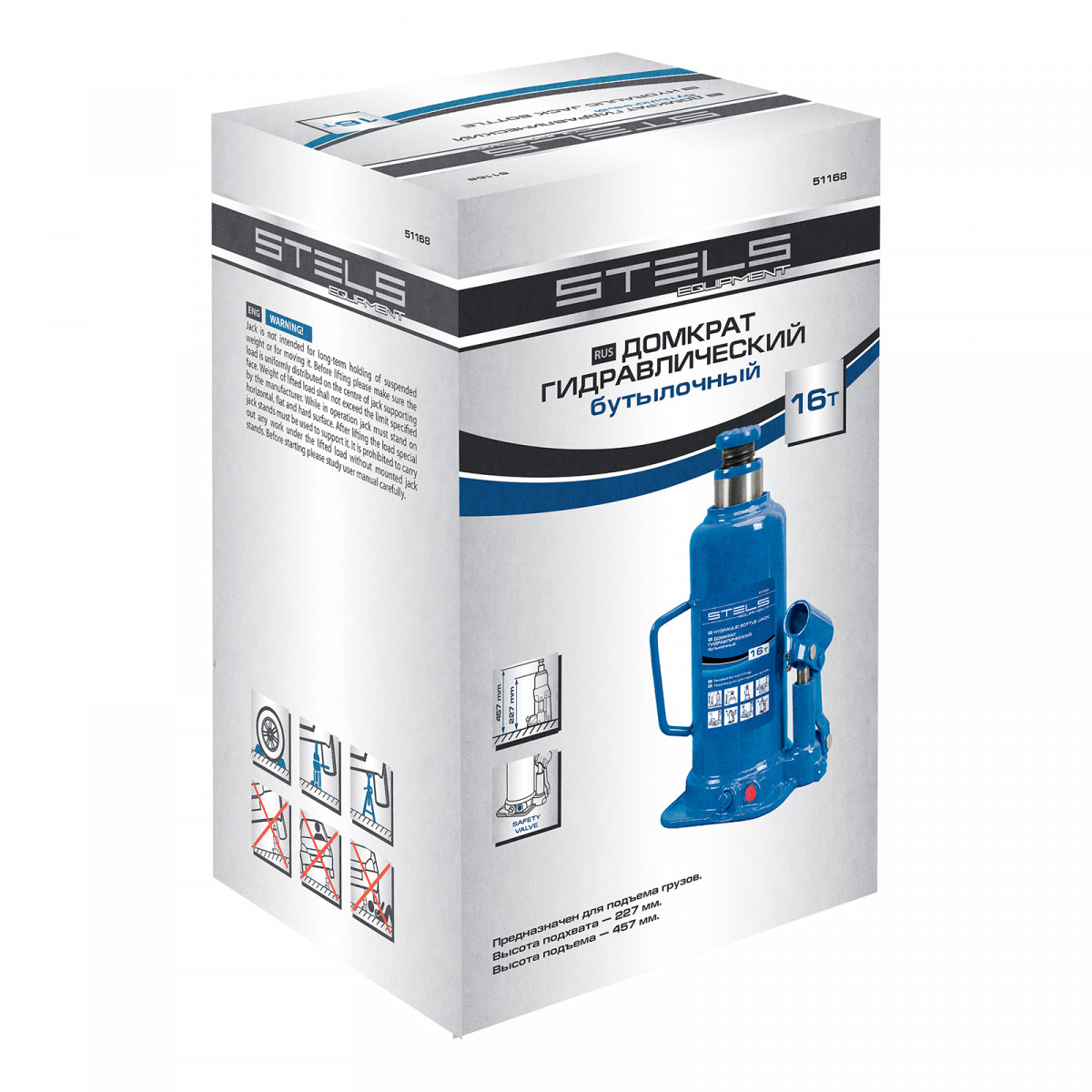 Гидравлический бутылочный домкрат Stels 51168 применяется для быстрого поднятия грузов весом до 16 т на высоту 227-457 мм. Оптимален для автомобилей с большим клиренсом. Домкрат будет полезен автолюбителям и профессионалам для ремонта транспортного средства.