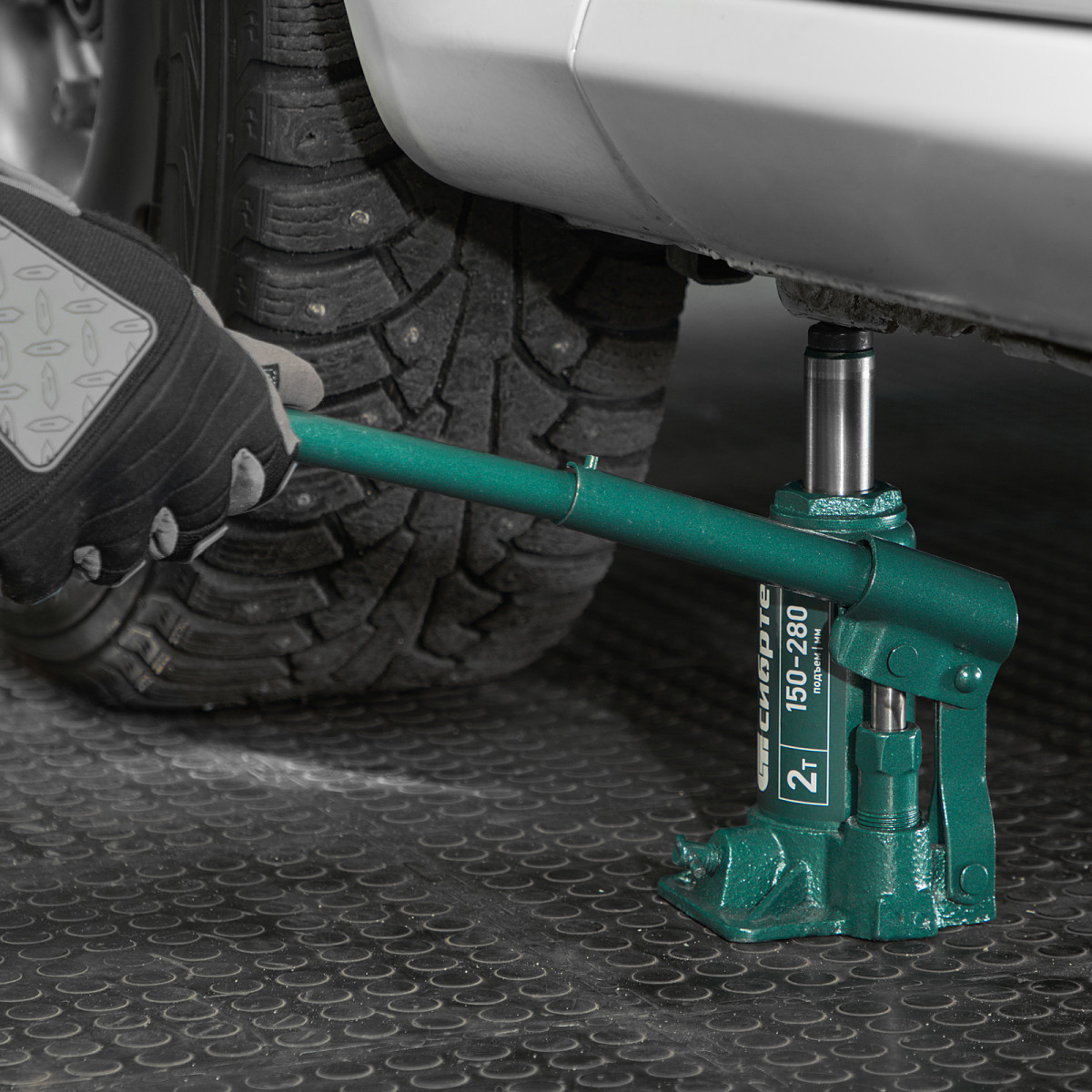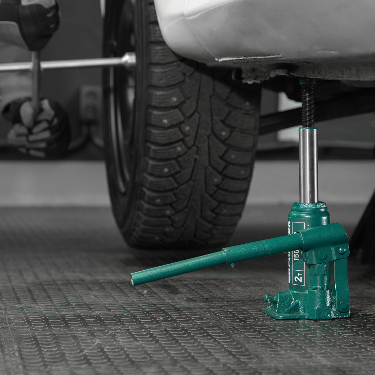 • Удобное хранение и транспортировка — домкрат весит всего 1,9 кг, а благодаря съемному рычагу не занимает много места.