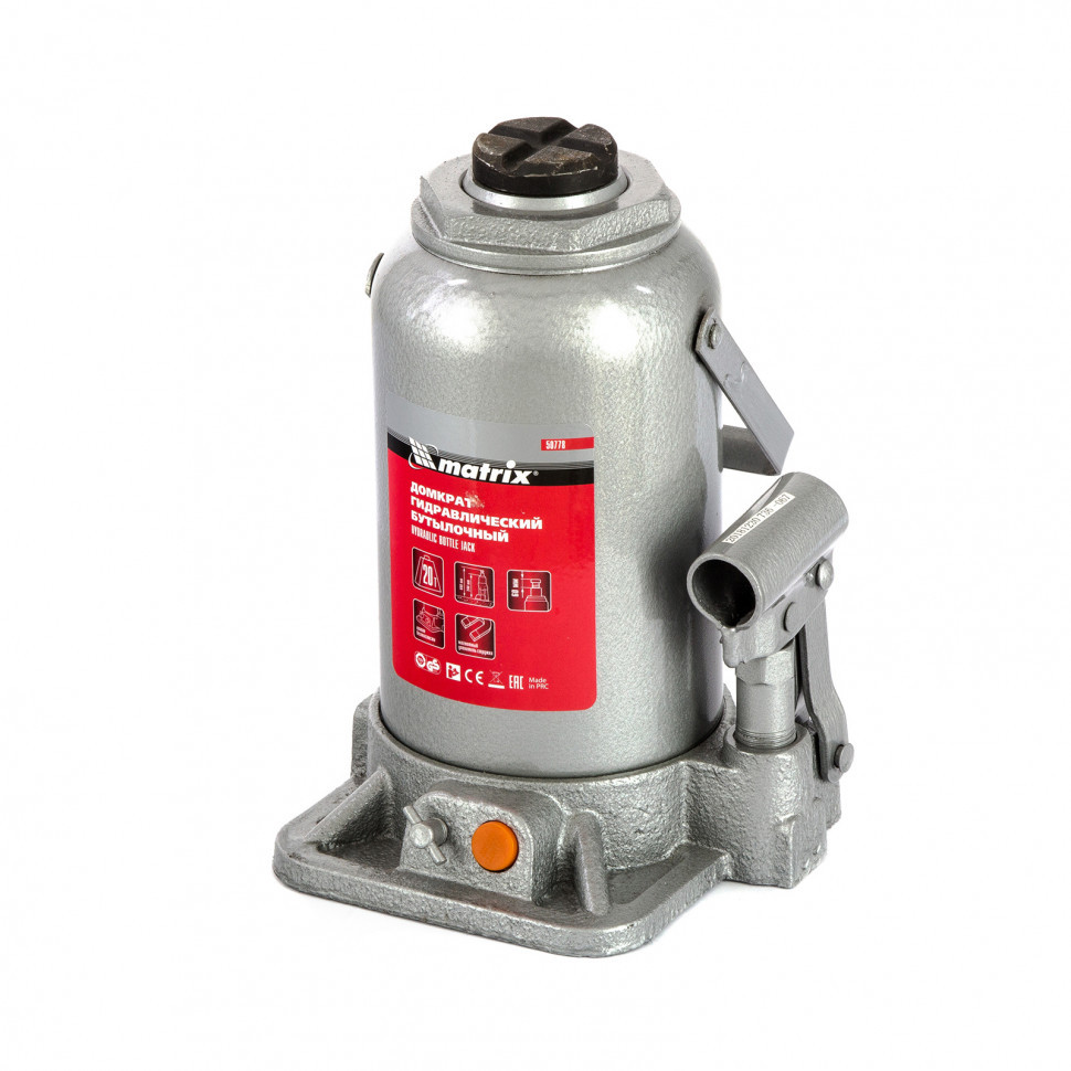 Гидравлический бутылочный домкрат Matrix 50778 быстро поднимает грузы весом до 20 т и может использоваться в гараже, на станциях ТО или небольших строительных площадках. Он обеспечивает высоту подъема в диапазоне 244-449 мм. Благодаря встроенному магнитному уловителю домкрат меньше подвержен износу, т.к. металлическая стружка собирается на магните.