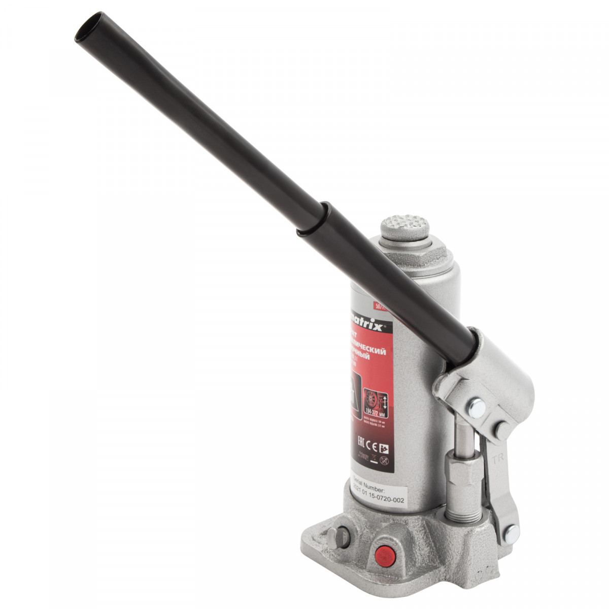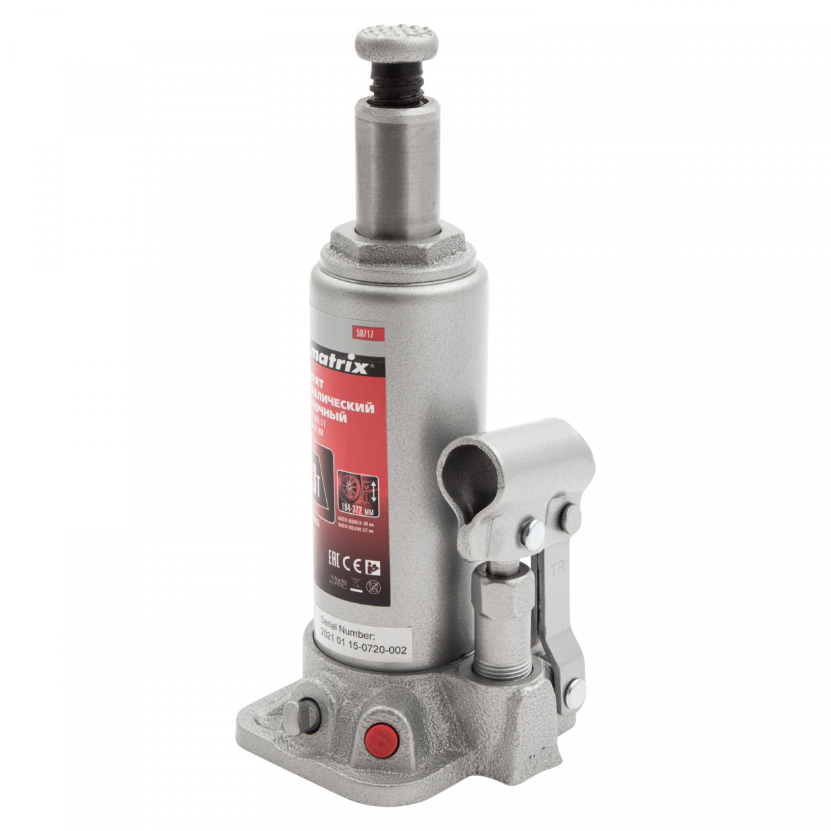 Домкрат гидравлический бутылочный Matrix 50717 используется для поднятия грузов массой до 3 т на высоту 194-372 мм. Подходит для автомобилей с высоким клиренсом. Домкрат будет полезен автолюбителям в гараже и дороге, а также сотрудникам СТО.
